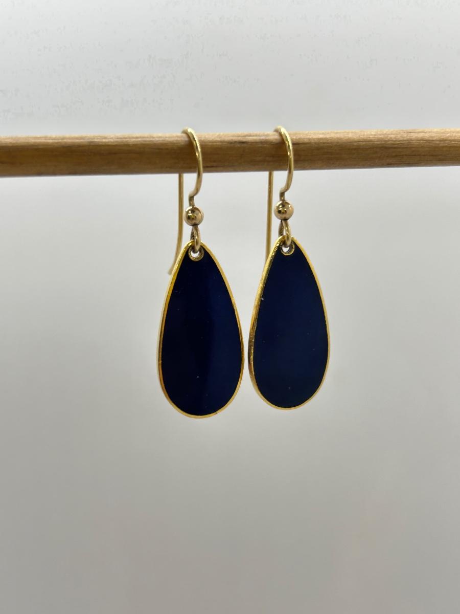 Pair of Raindrop Shaped Gold Tone and Enamel Dangling Earrings for Pierced Ears