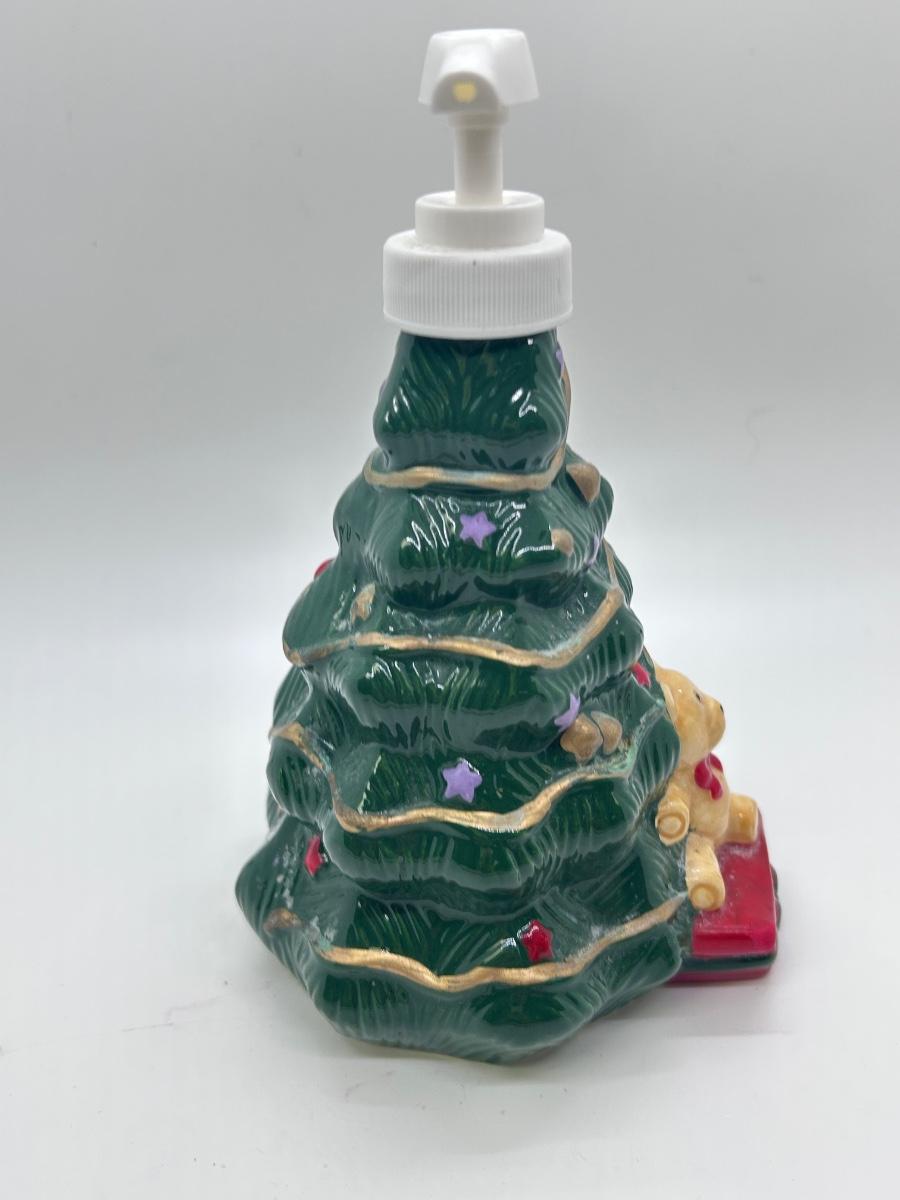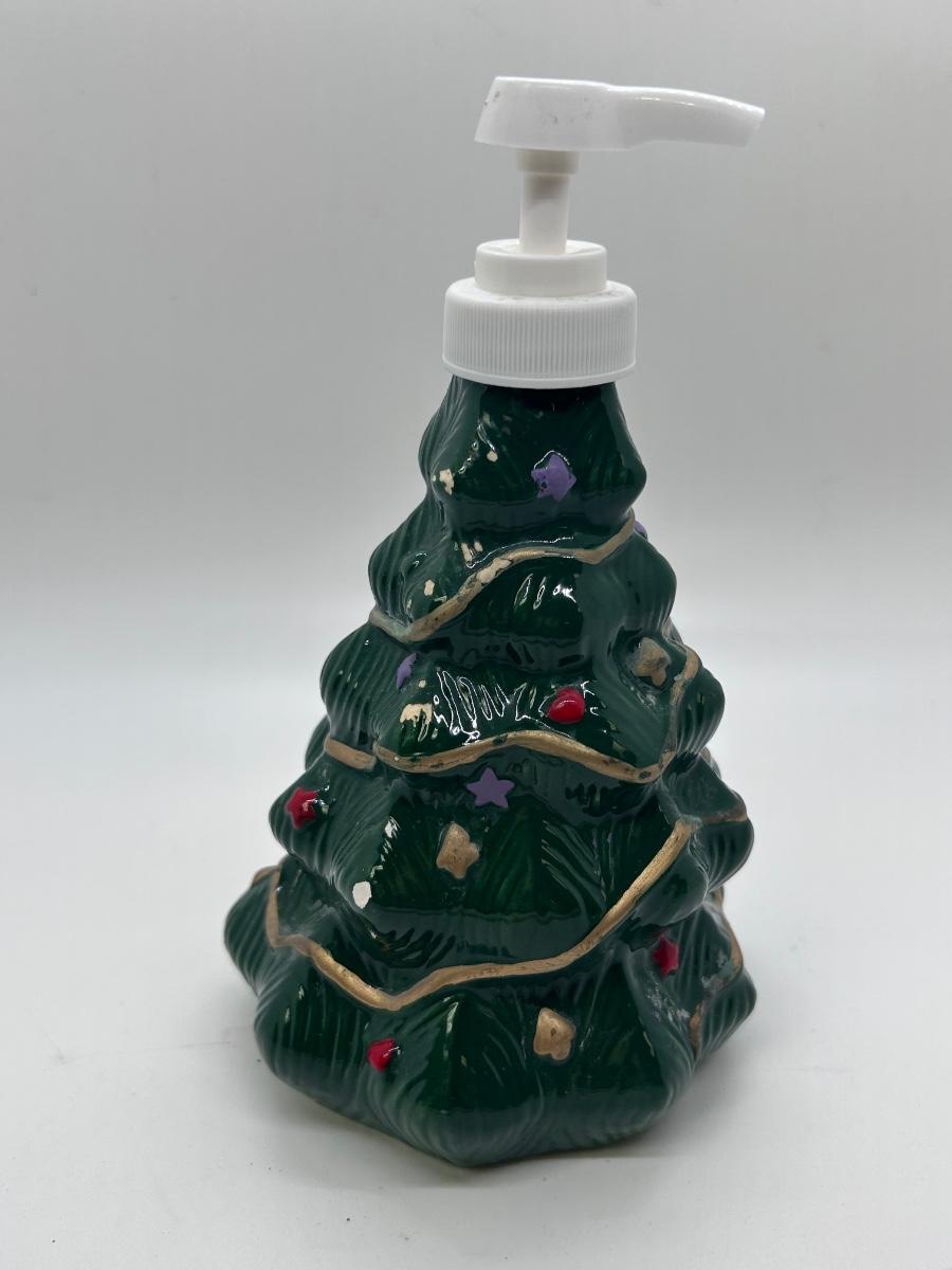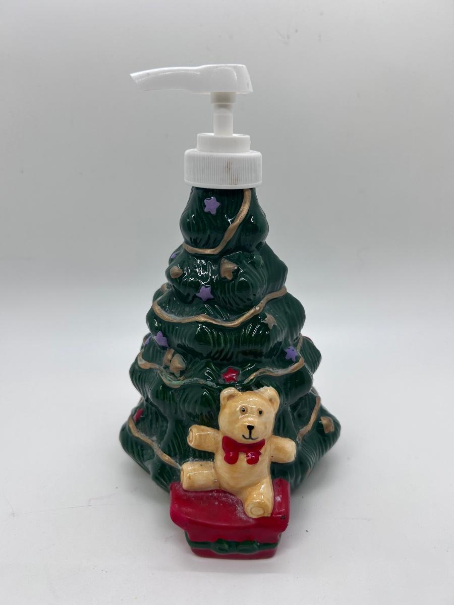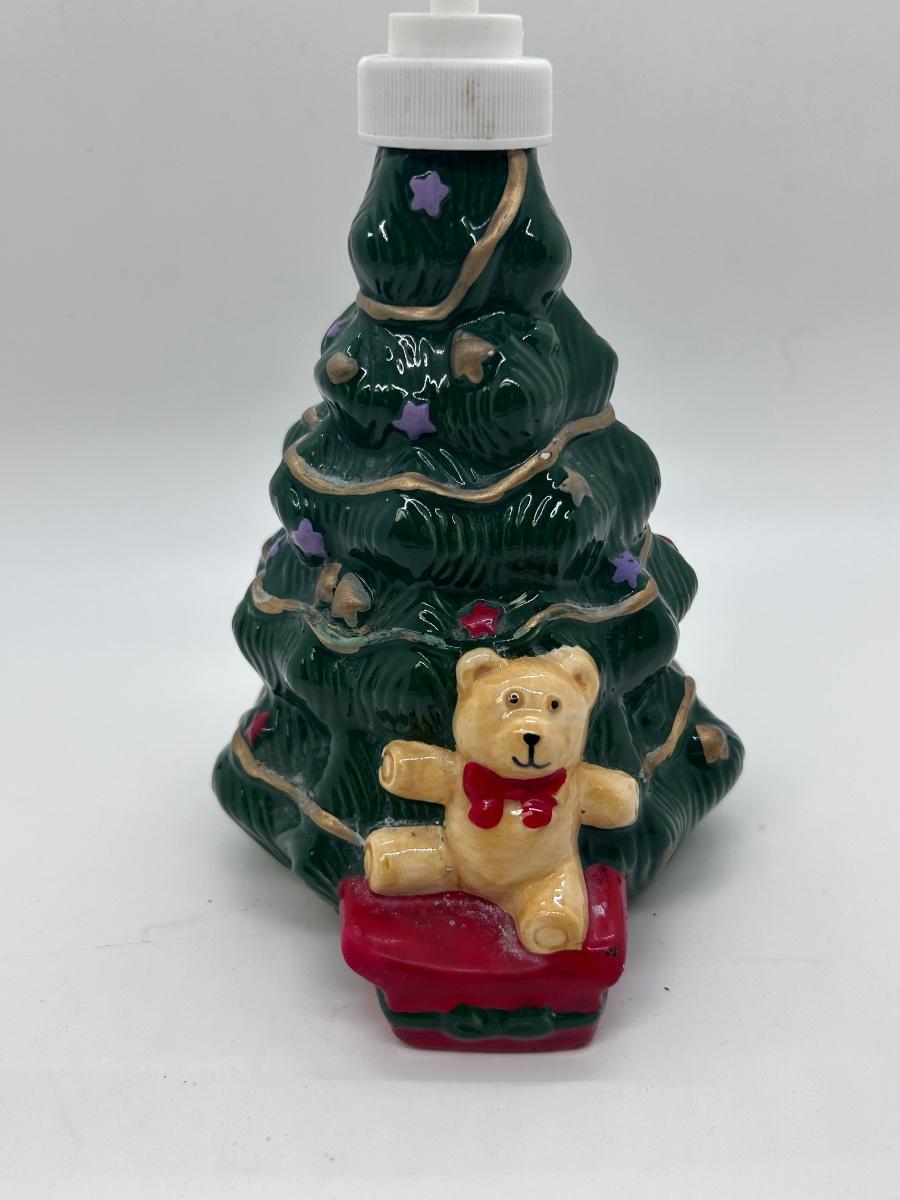 Retro 1995 Allure Brand Ceramic Christmas Tree Soap Lotion Pump Dispenser. In good condition.