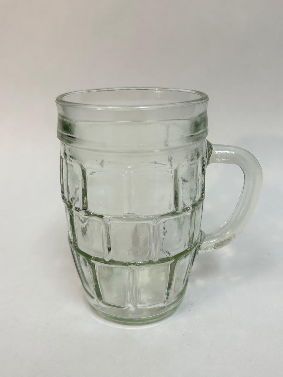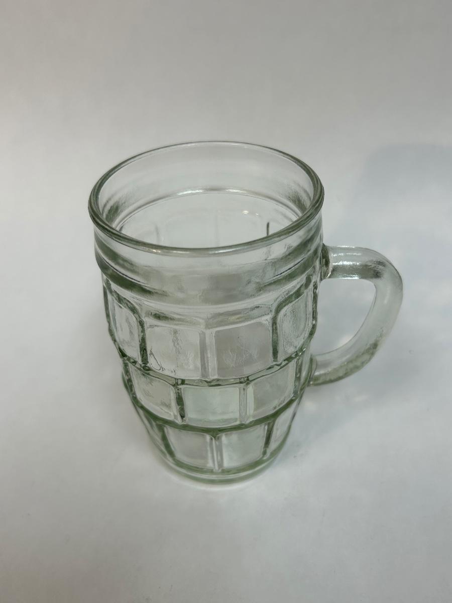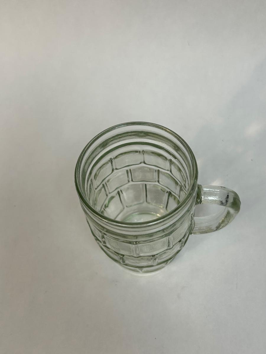 Vintage Barrel Shaped Pressed Glass Coffee Cup Handle Drink Glass Mug. In good condition. Only one. No chips.