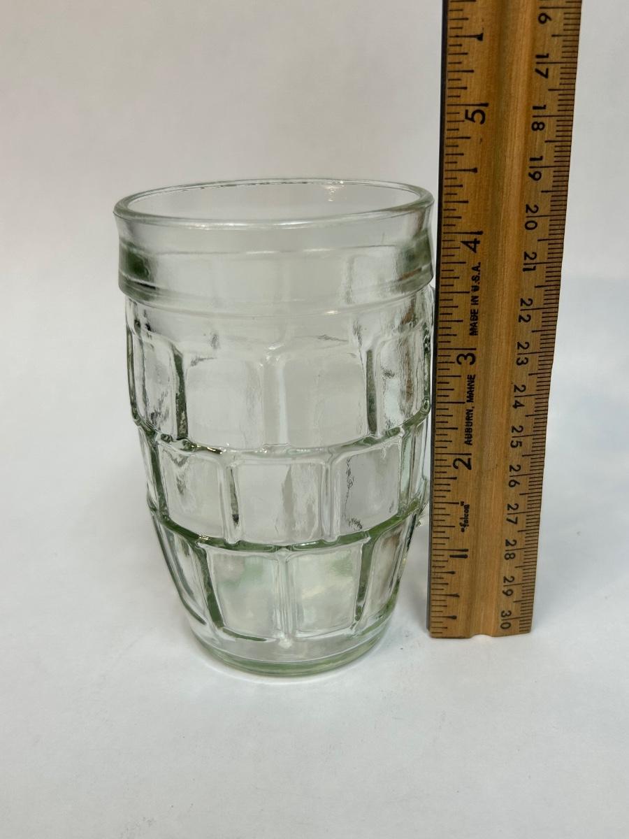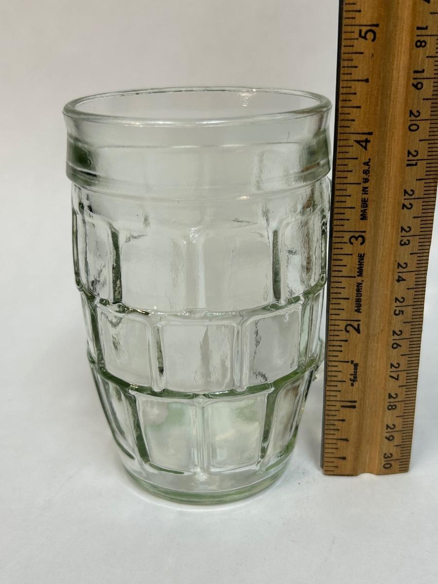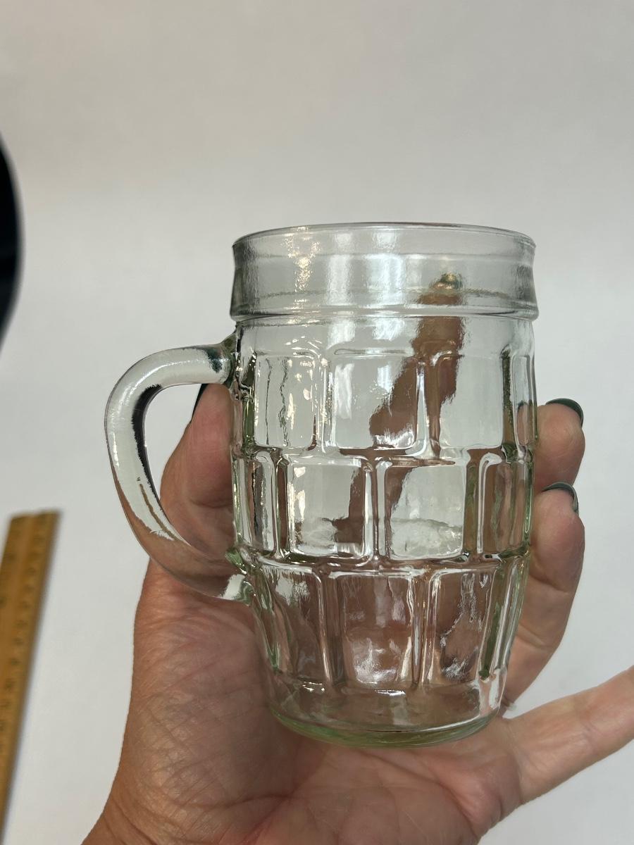 Vintage Barrel Shaped Pressed Glass Coffee Cup Handle Drink Glass Mug. In good condition. Only one. No chips.