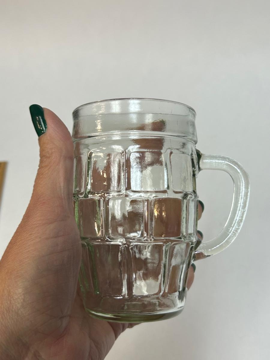 Vintage Barrel Shaped Pressed Glass Coffee Cup Handle Drink Glass Mug
