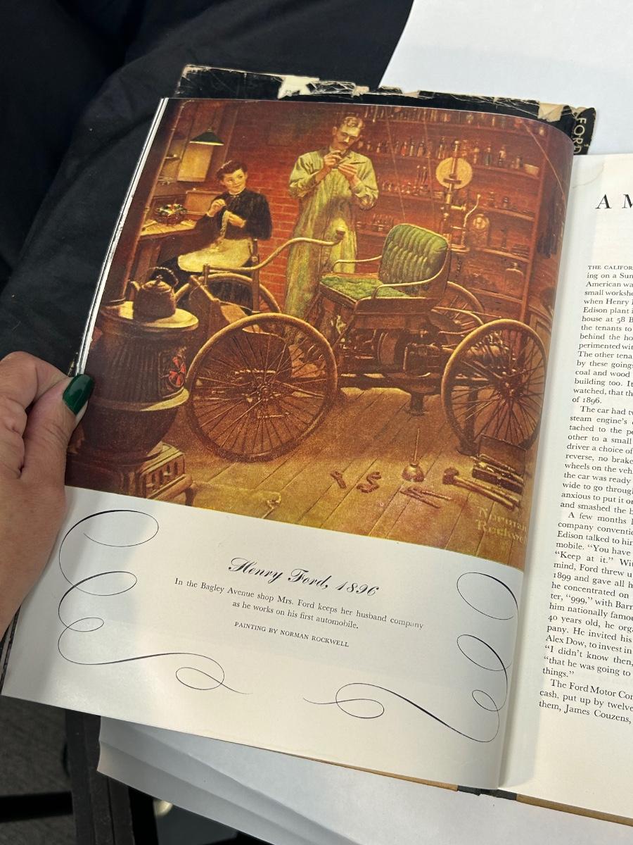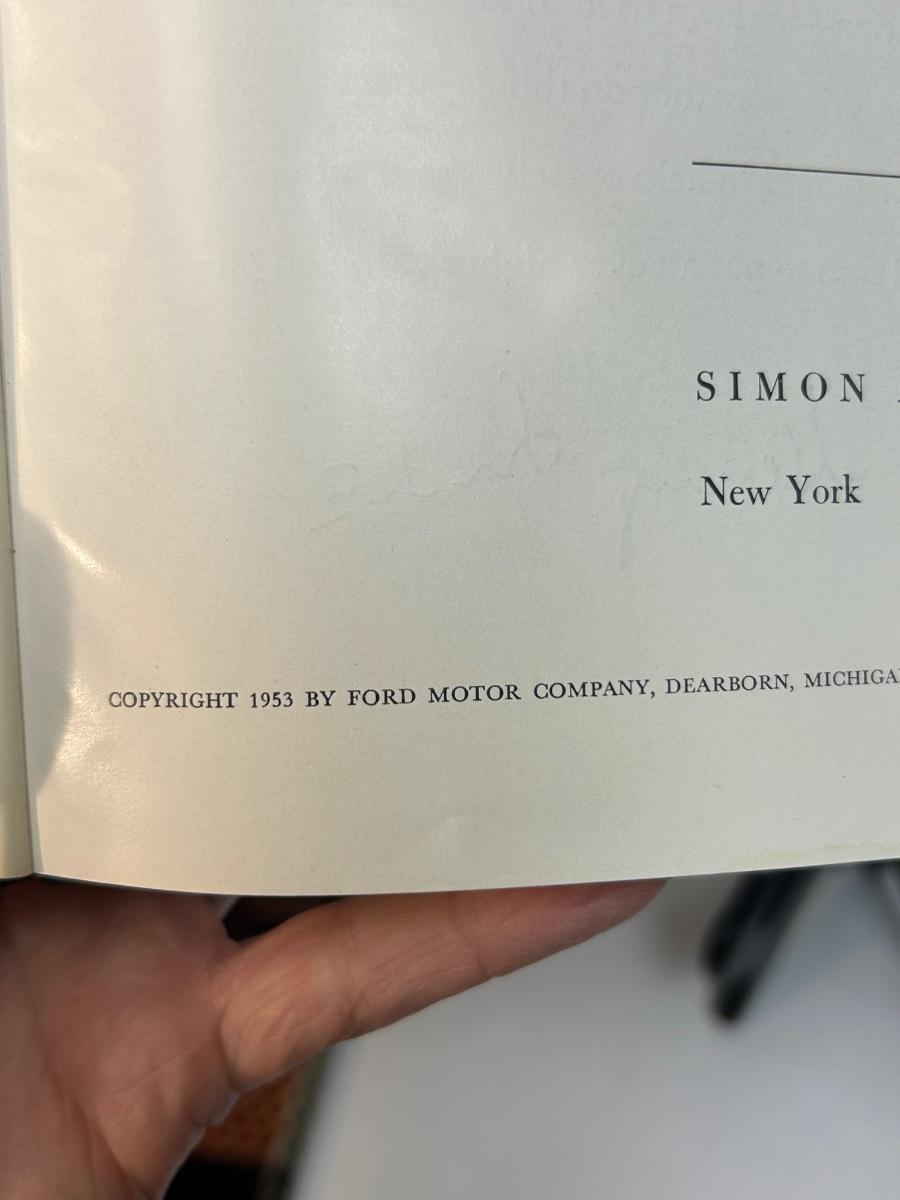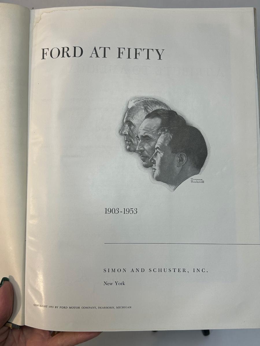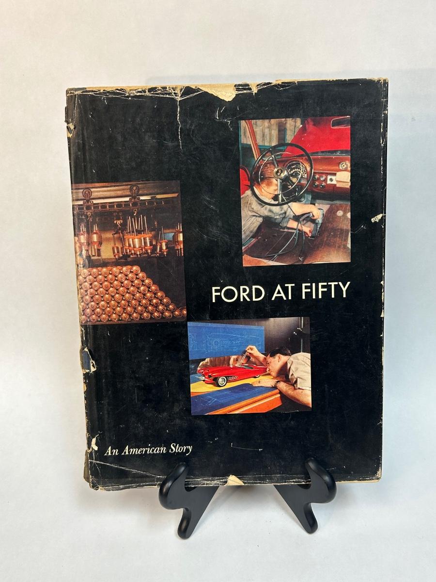Ford at Fifty An American Story 1953 Automobile Retrospective Hard Cover Book. In vintage condition. The dust jacket is worn. The actual cover has some discoloration along the top edge. No ripped pages. Great for car enthusiasts.
