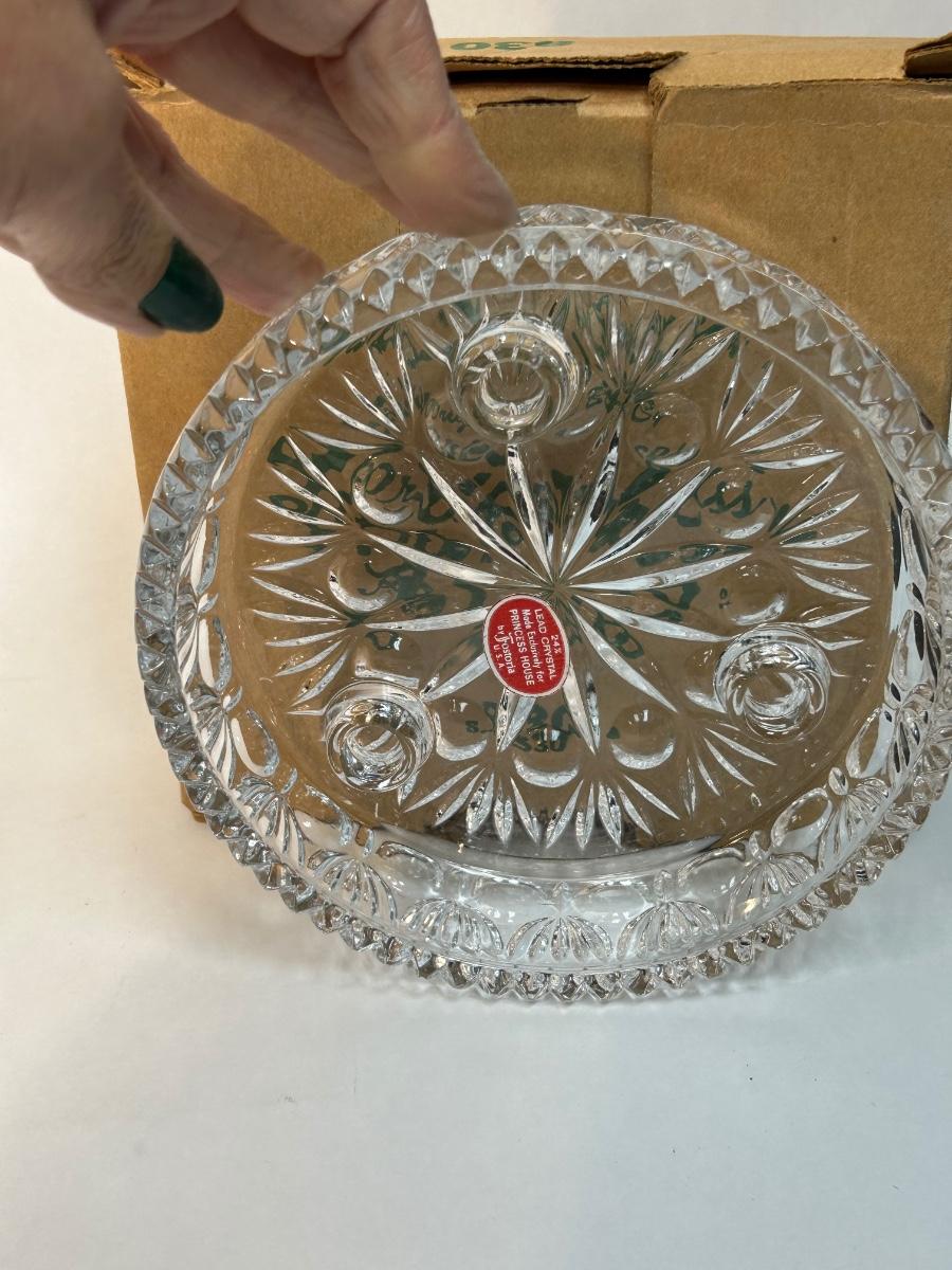 Vintage Fostoria for Princess House Lead Crystal Three Taper Candle Holder Dish with Original Box