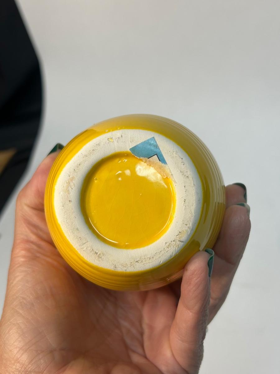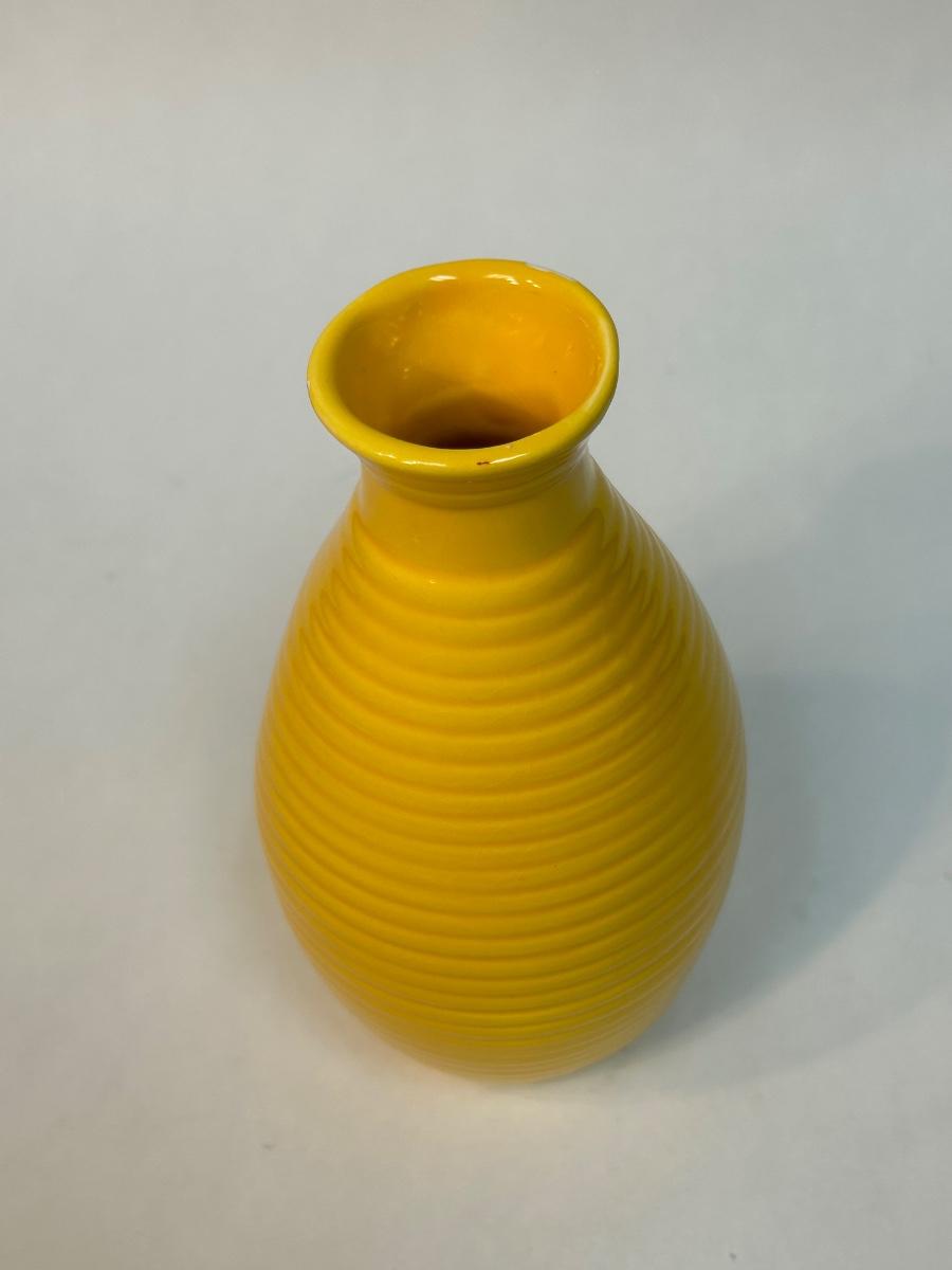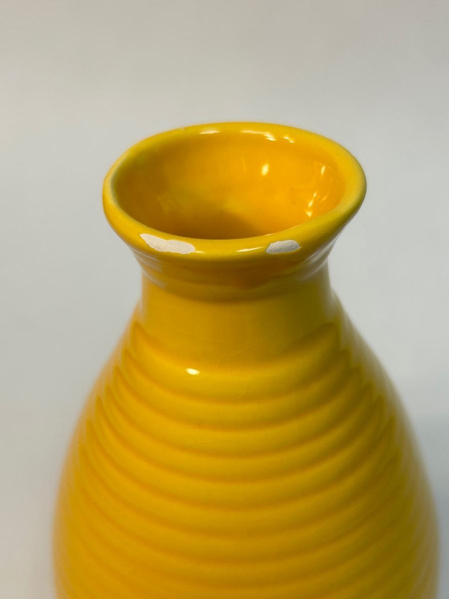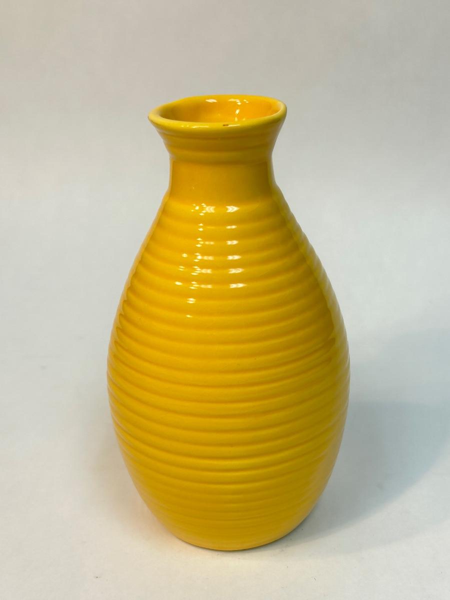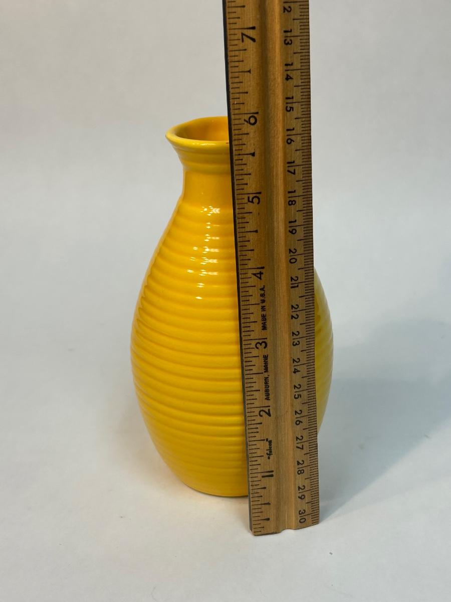 Sunshine Yellow Ribbed Beehive Pottery Floral Flower Vase Unsigned. In fair condition. Does have a couple of small chips along the edge.