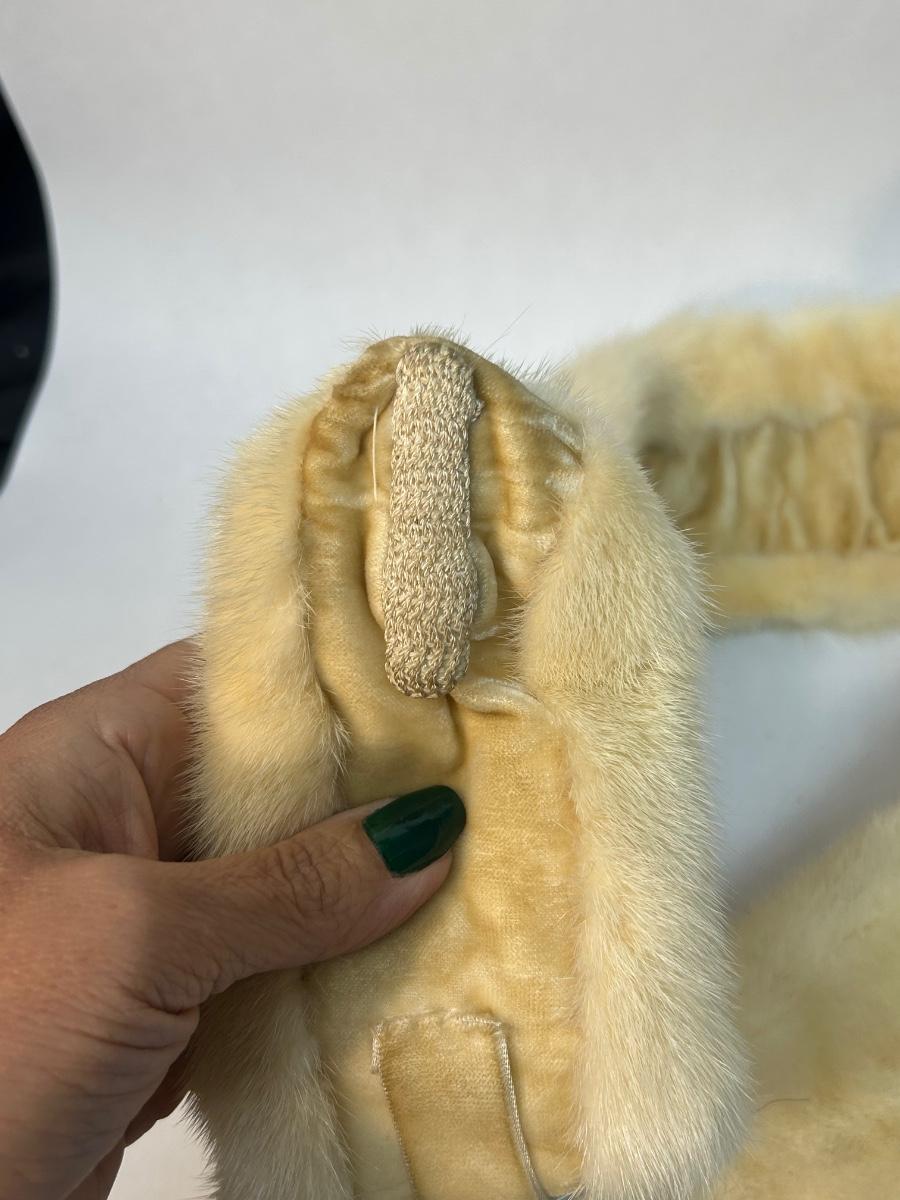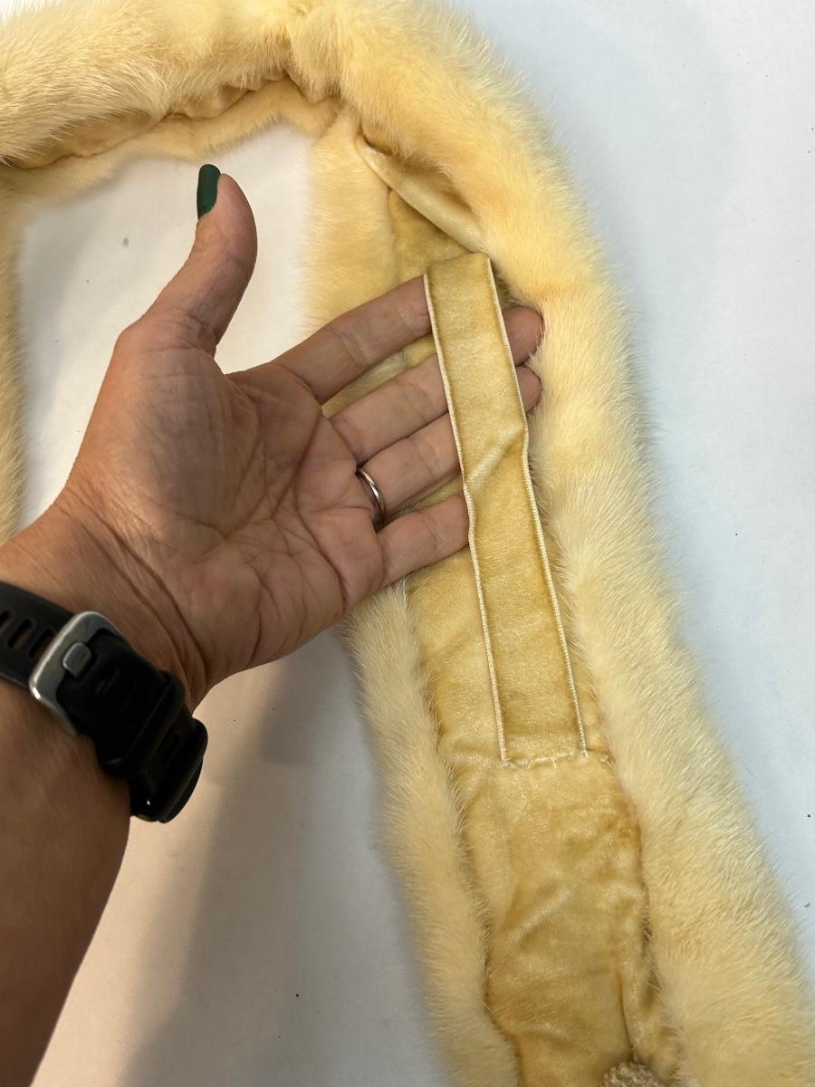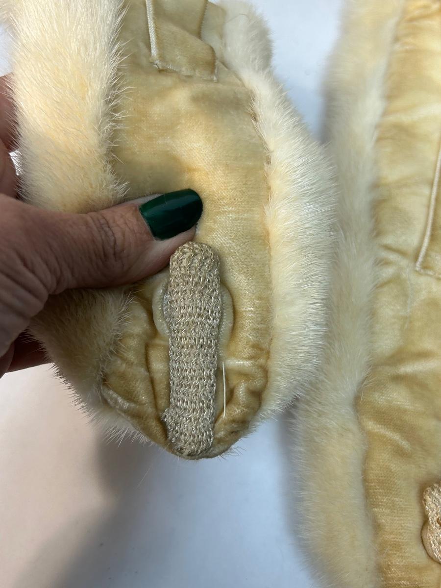 Vintage Child Sized White Mink Shoulder Wrap Stole. Has straps for arms to help stay in place and clips at ends for holding to a garment or together. About 32" total length. Would fit a small child or large doll.