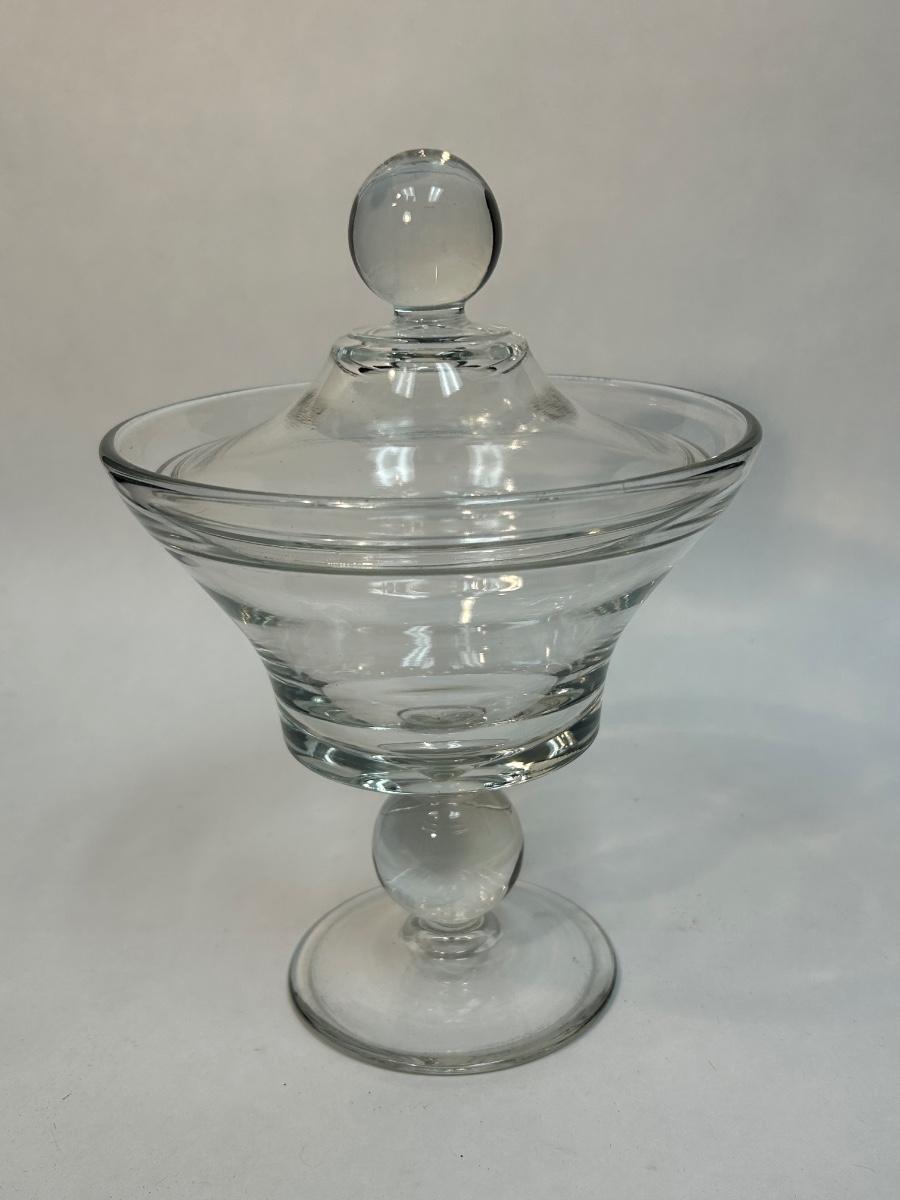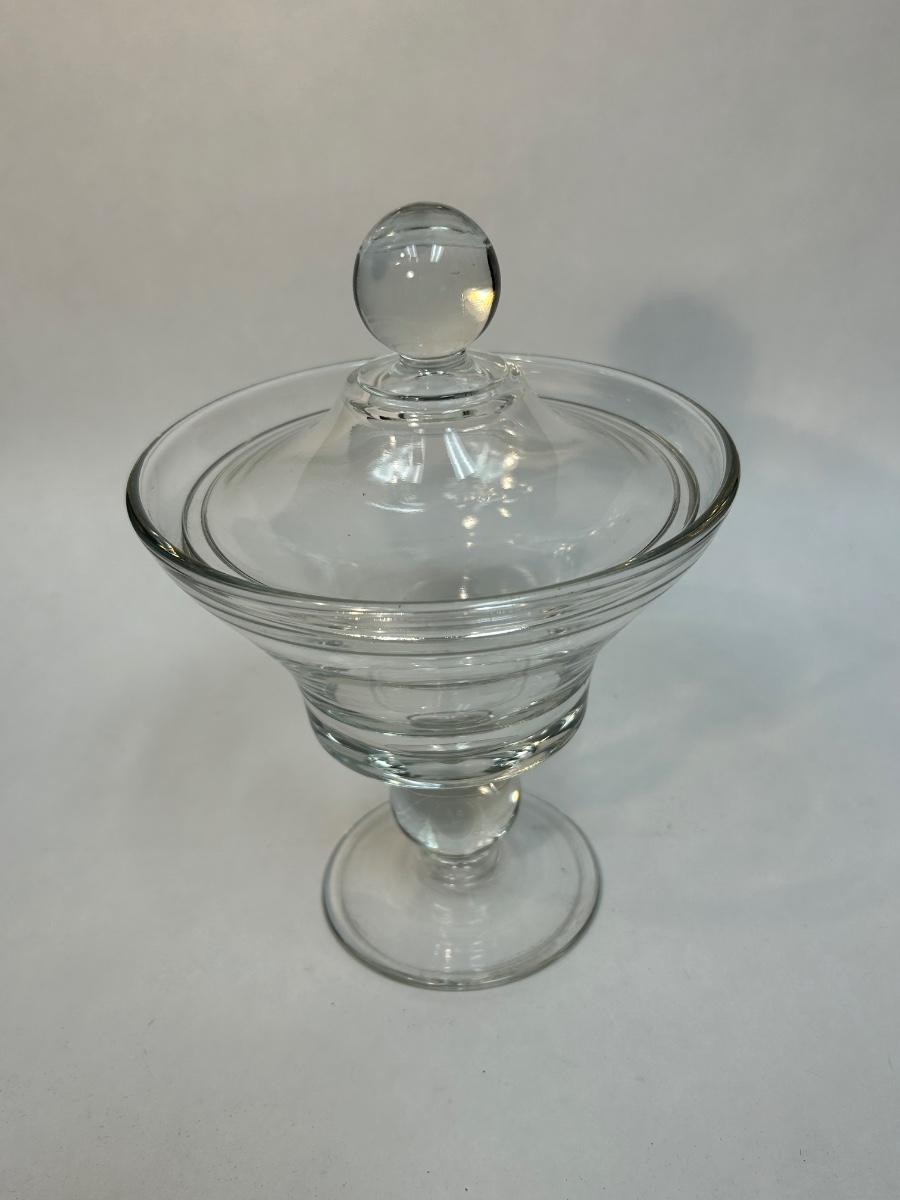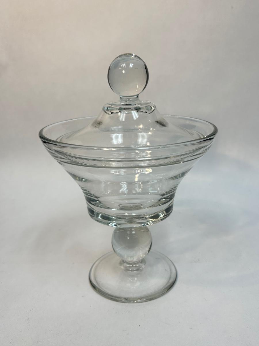 Vintage Pressed Clear Glass Pedestal Footed Lidded Candy Dish Compote