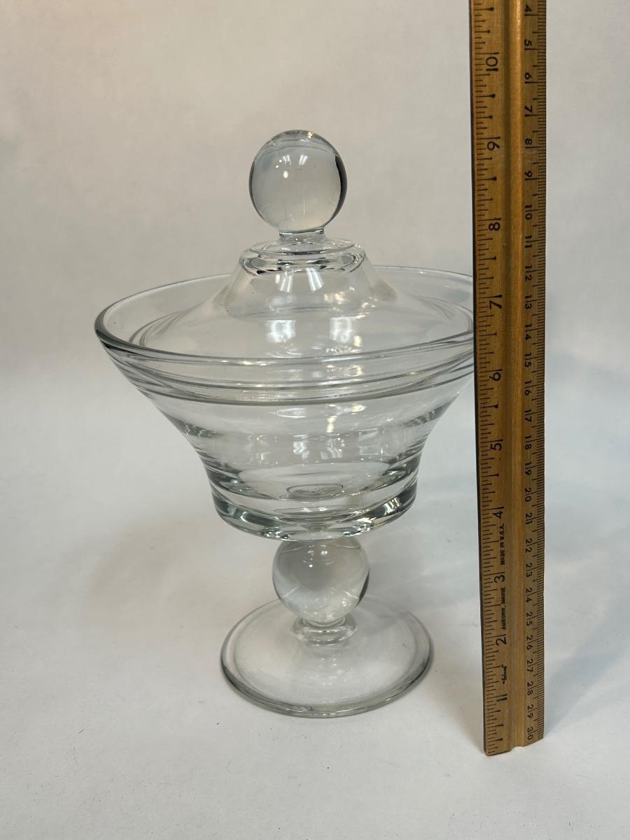 Vintage Pressed Clear Glass Pedestal Footed Lidded Candy Dish Compote. In good condition. About 9" size.