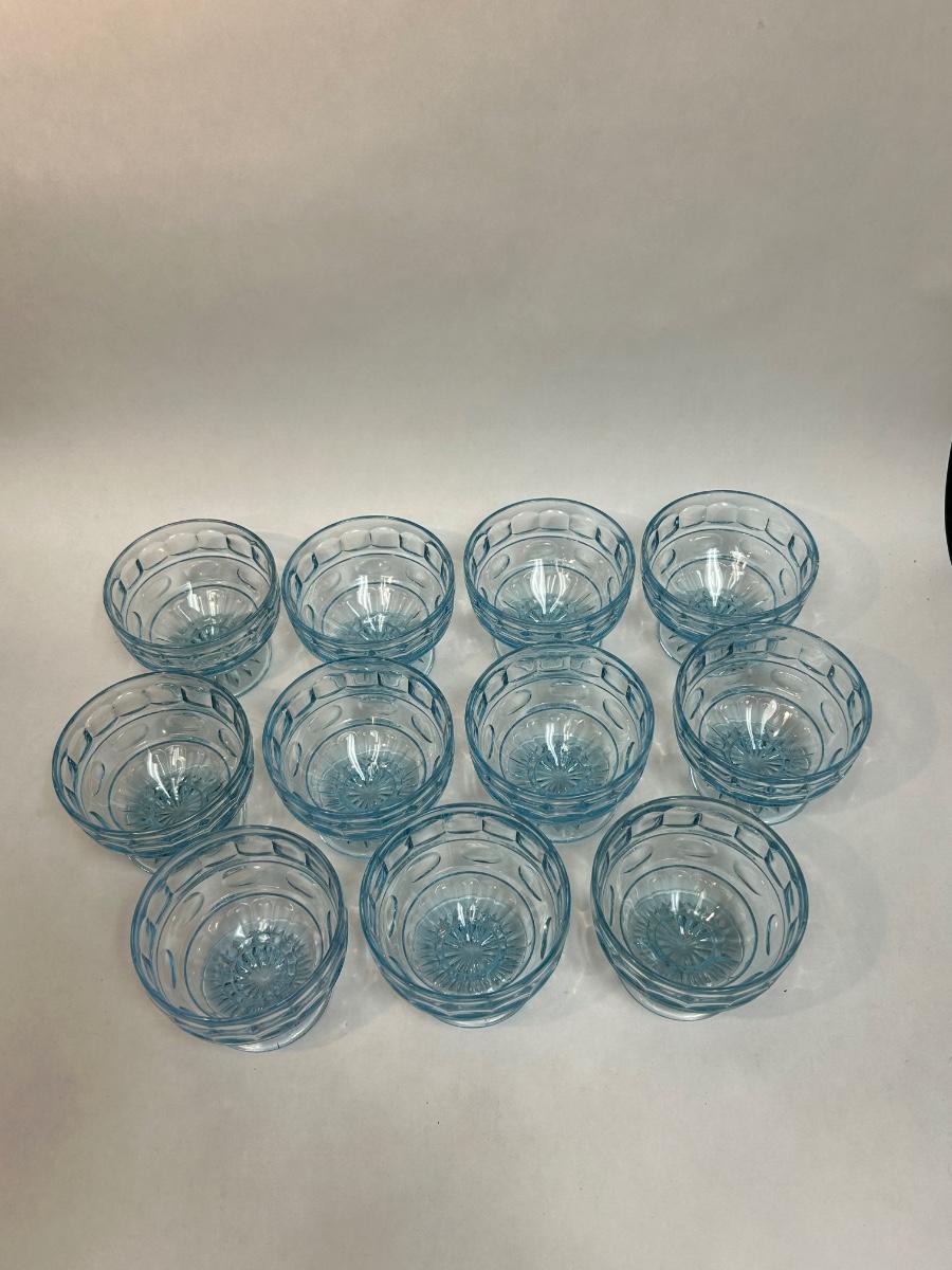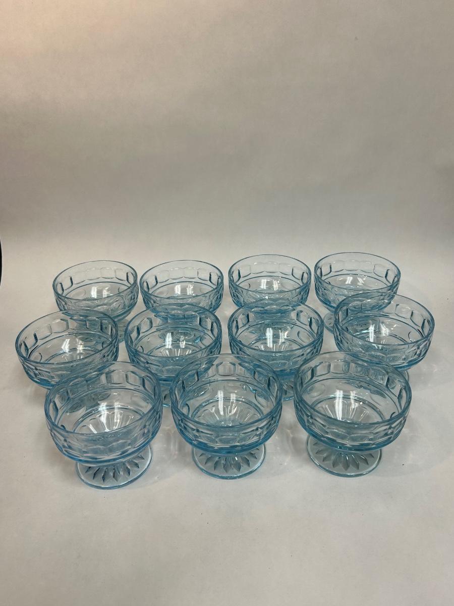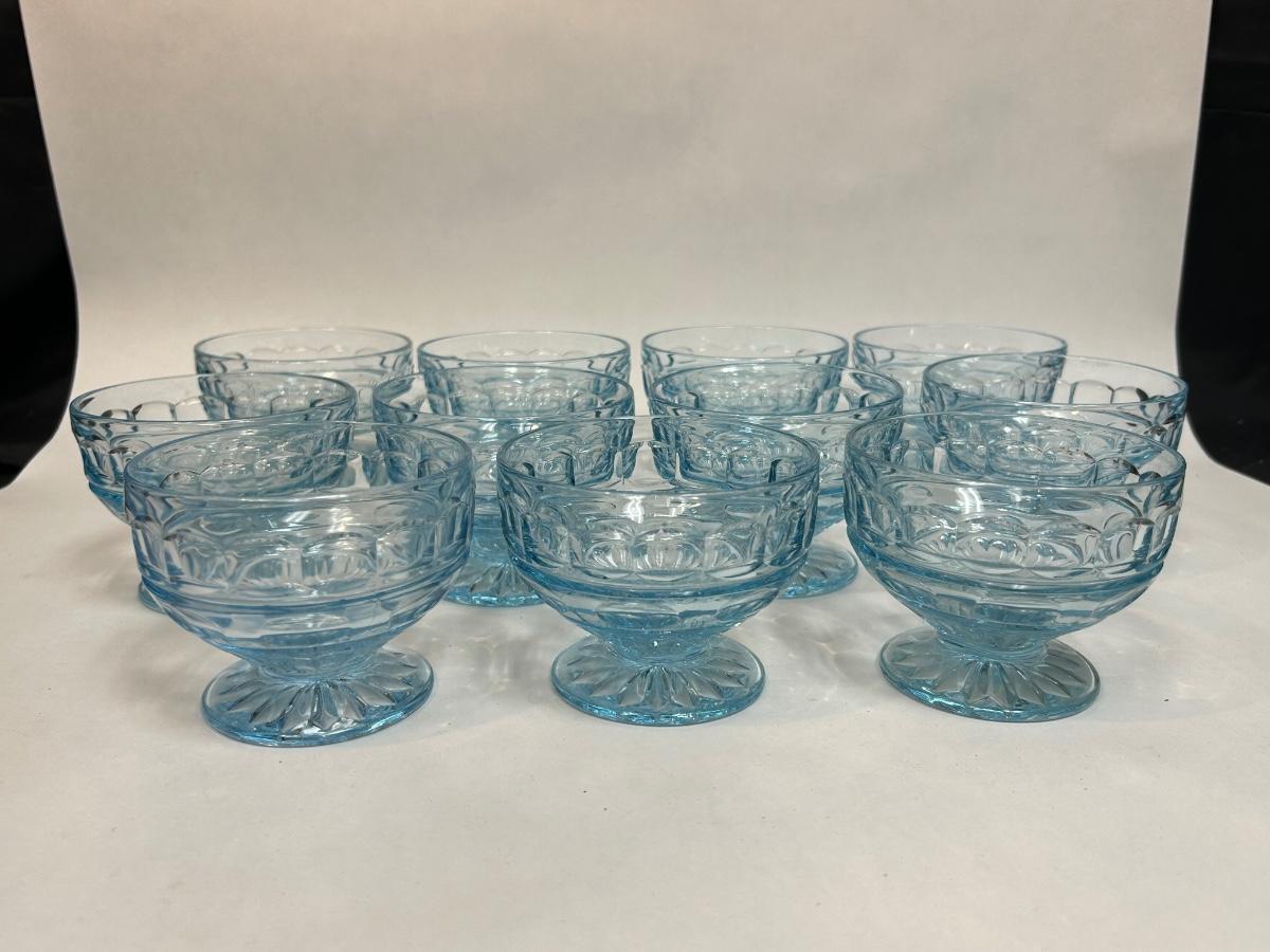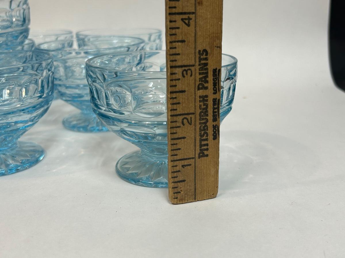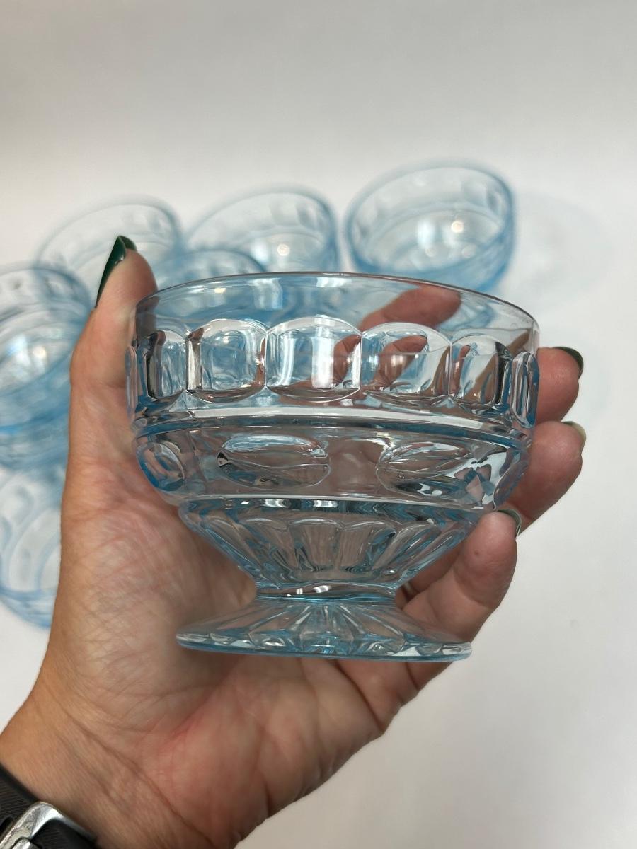 Vintage Pale Blue Fostoria Hermitage Footed Ice Cream Fruit Bowl Dish Custard Cups. Lot of 11. In good condition, no chips. About 3" size.