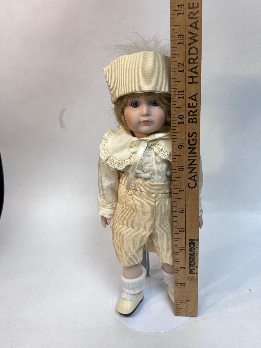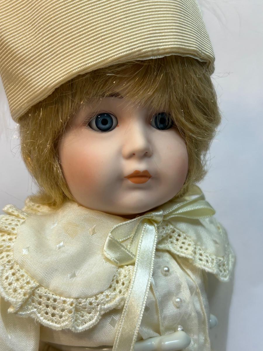 Victoria Ashlea Originals Limited Edition Porcelain Doll House of Global Art 1986. In good previously displayed condition. About 12" size. Fixed glass eyes. Comes with stand.