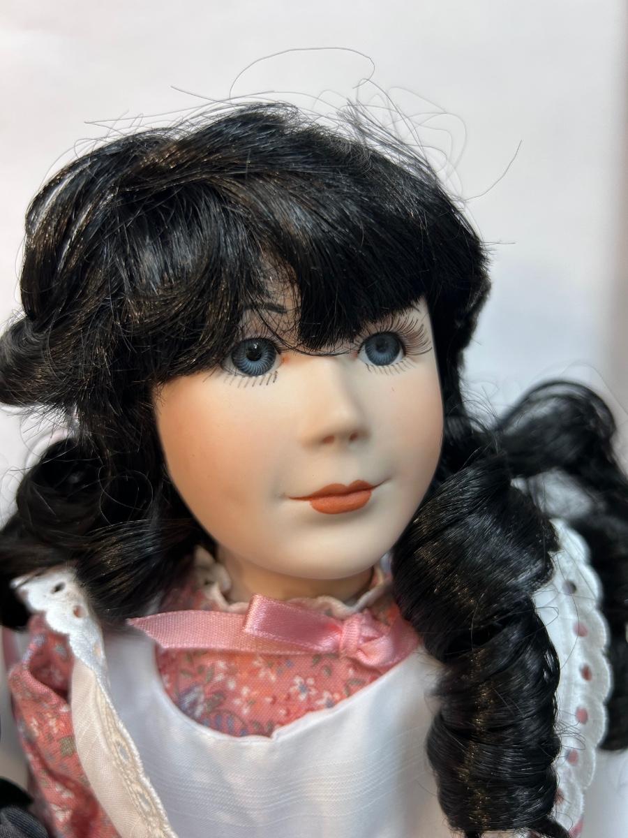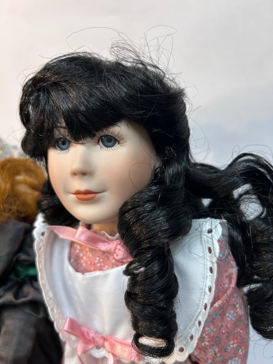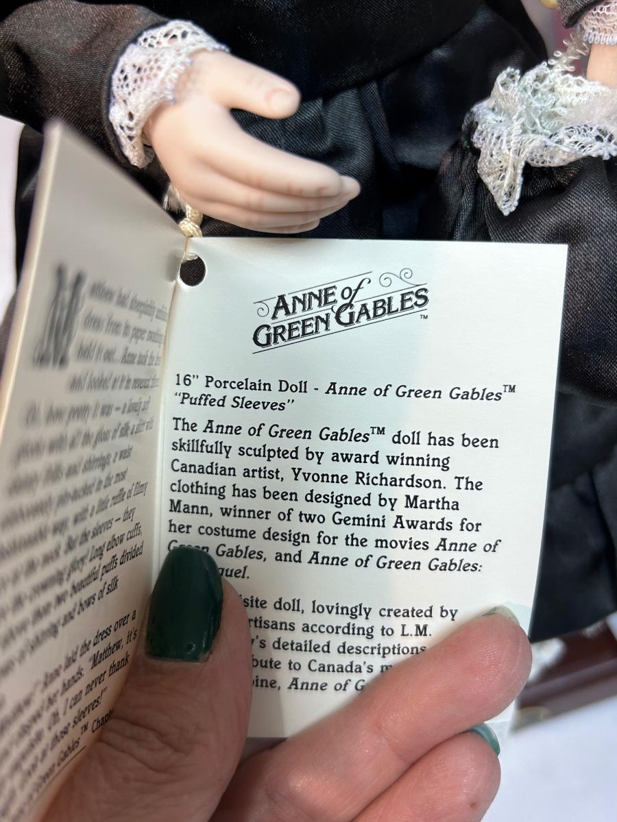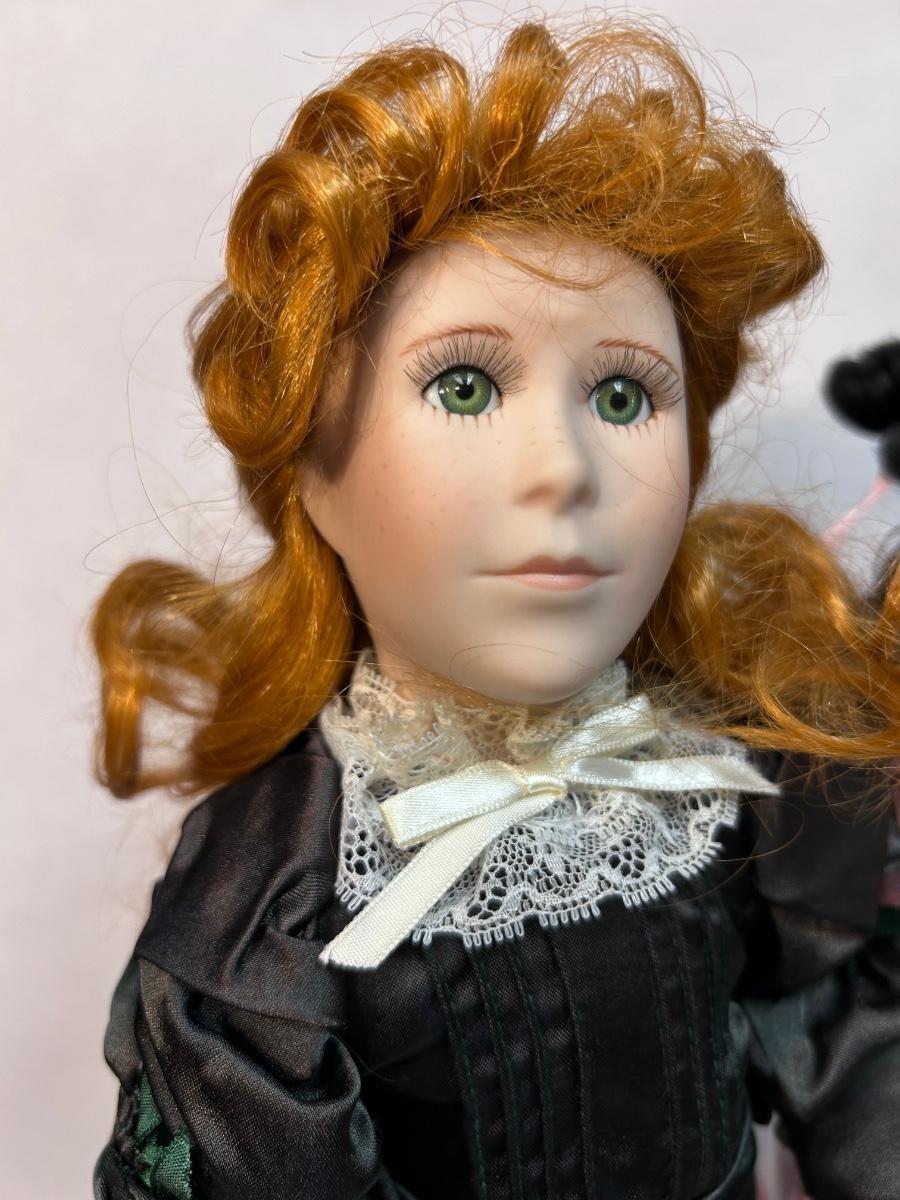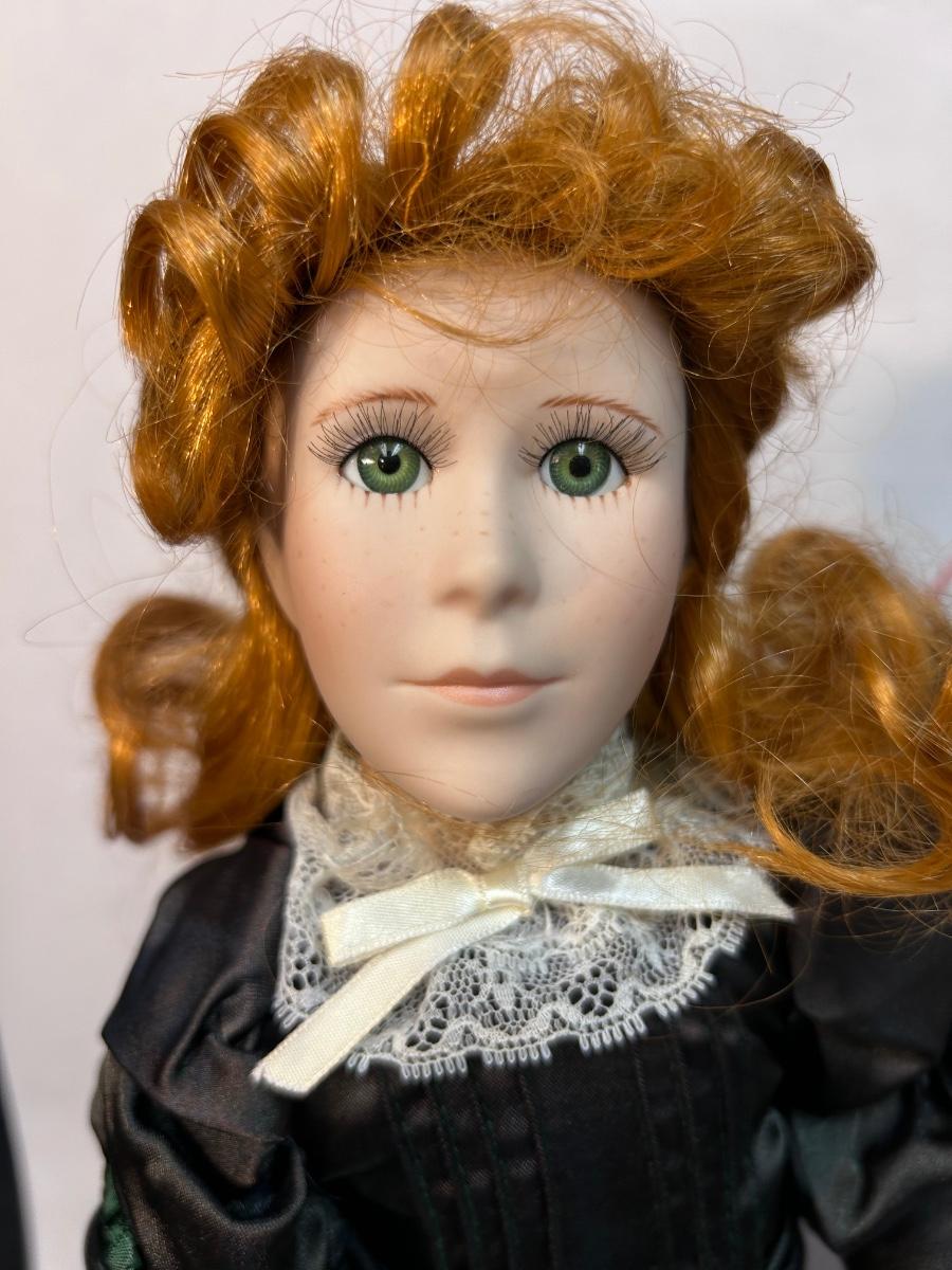 Pair of Porcelain Anne of Green Gables Collector Dolls with Stands and Hang Tags