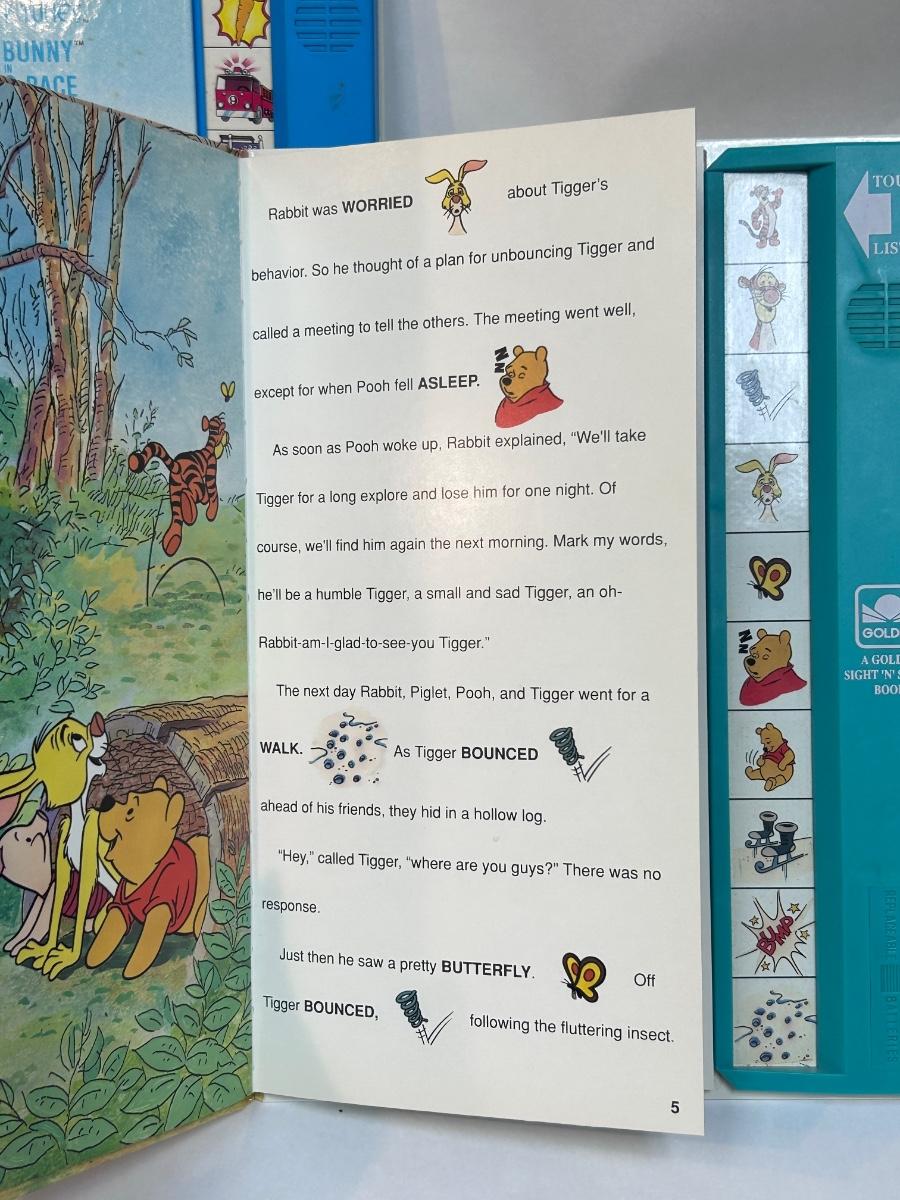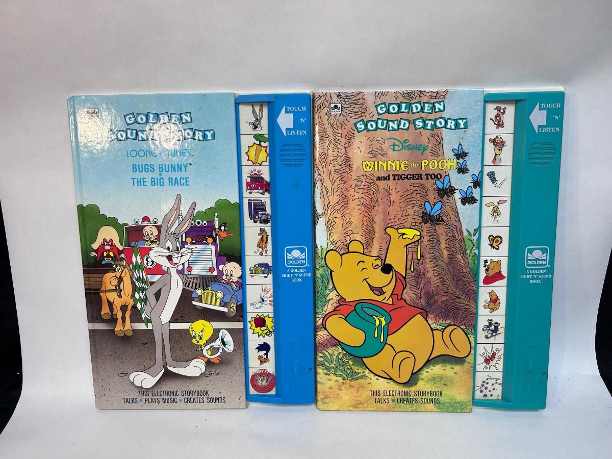 Pair of Touch 'N Listen Young Child Golden Sound Story Books Disney Winnie the Pooh & Looney Tunes Bugs Bunny. In previously read condition. Both work, may benefit from new batteries though.