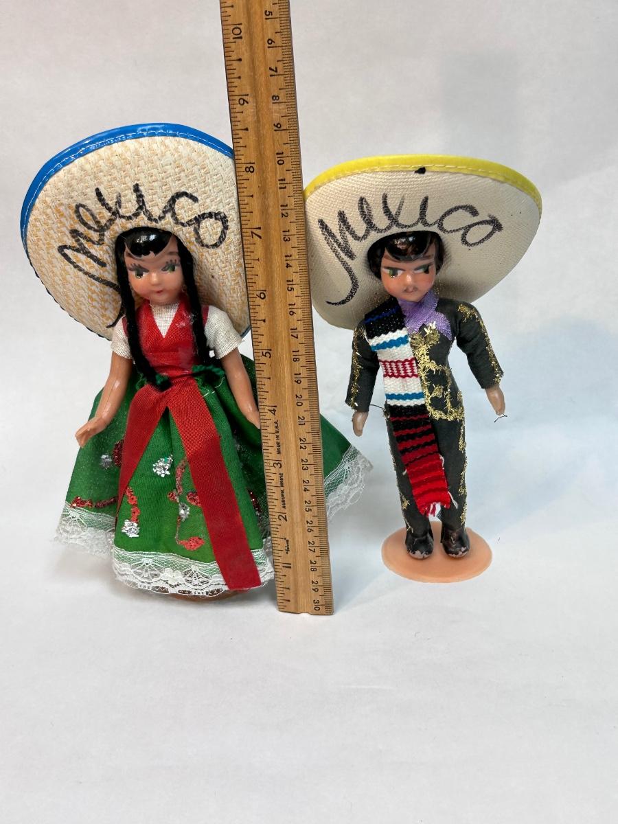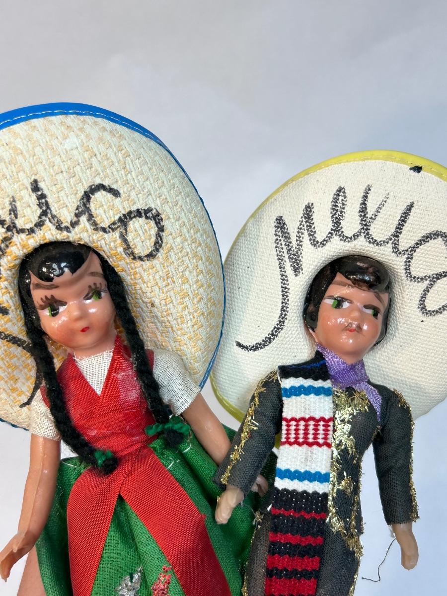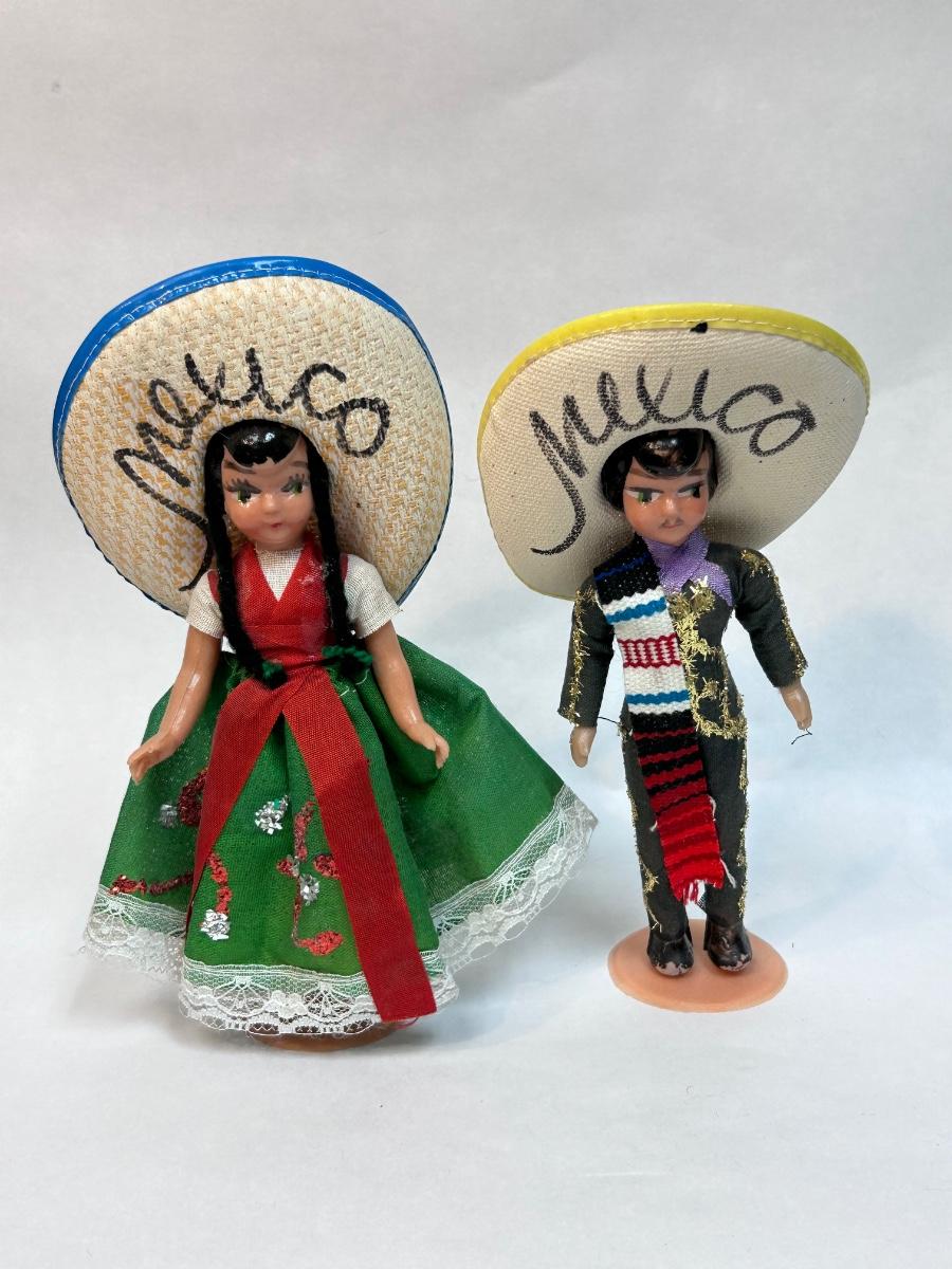 Vintage Celluloid Plastic Mexico Senor Senorita Vacation Souvenir Dolls