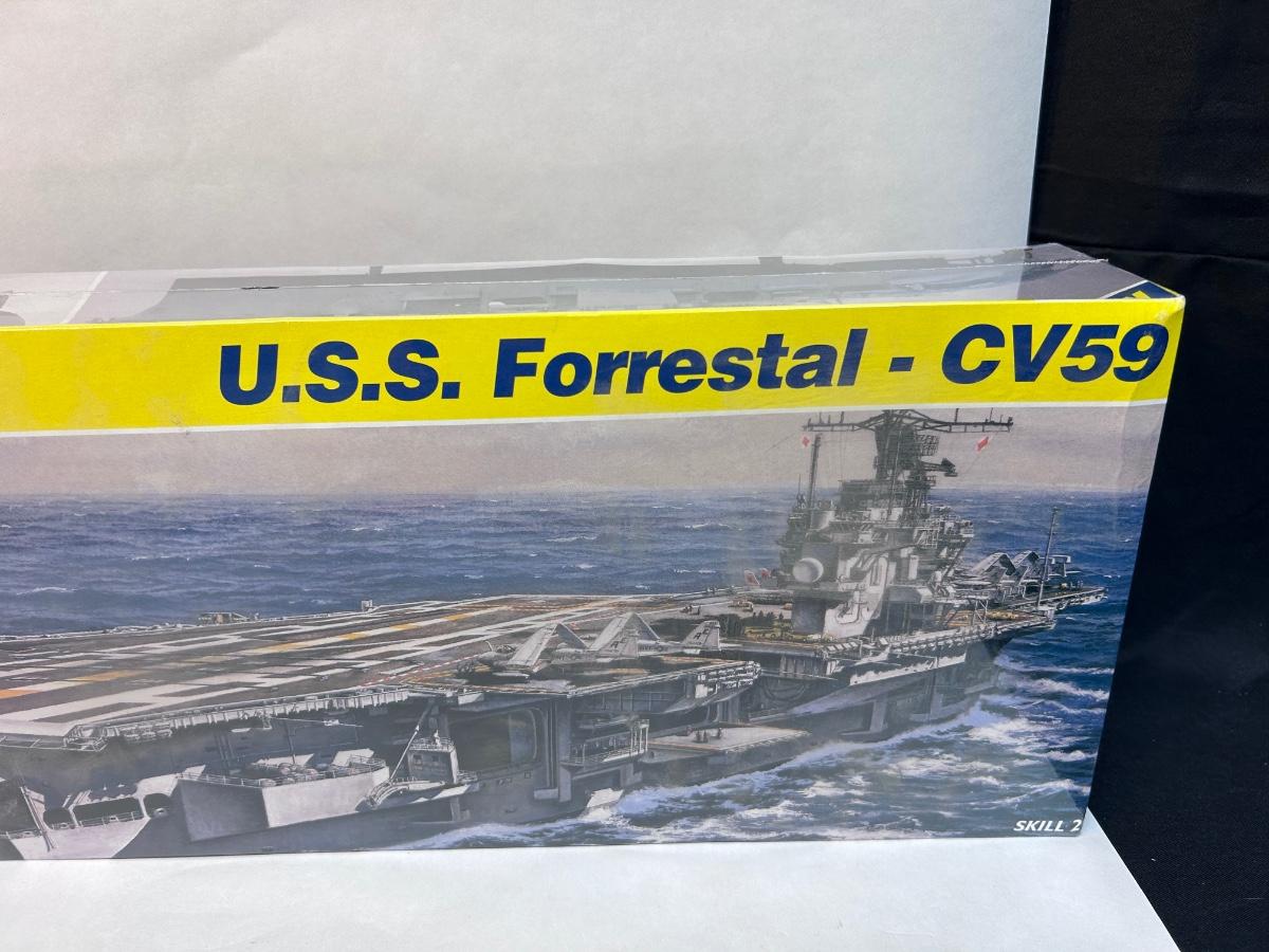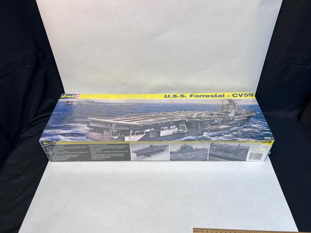 Unopened Revell USS Forrestal CV59 US Military Supercarrier Model Ship Skill 2 Sealed Box. Unopened. Box is about 24" size.