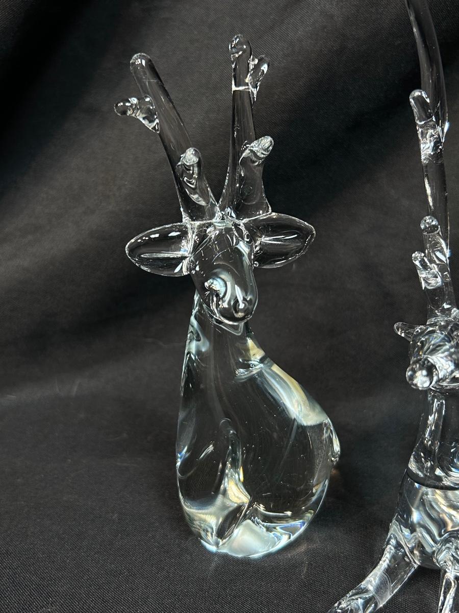 Pair of Blown Glass Reindeer Paper Weight Figurines