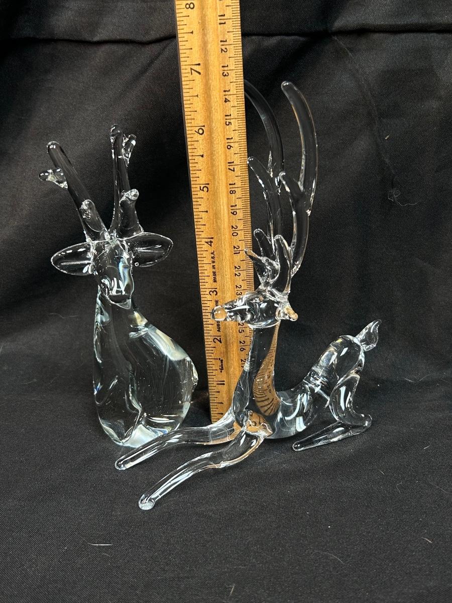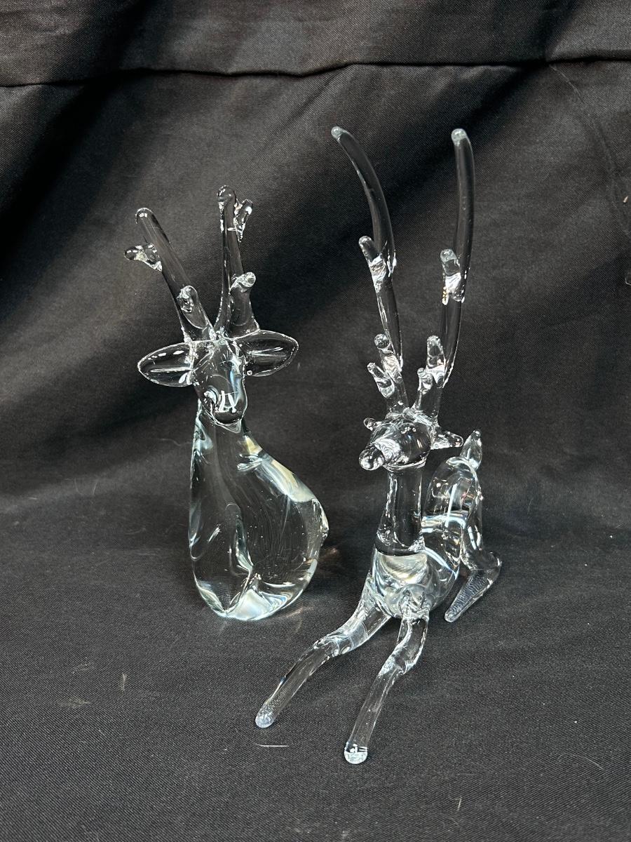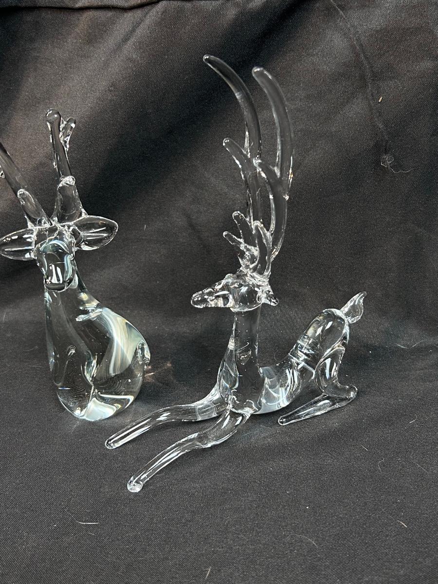 Pair of Blown Glass Reindeer Paper Weight Figurines. In good condition. No chipped edges or repairs found.
