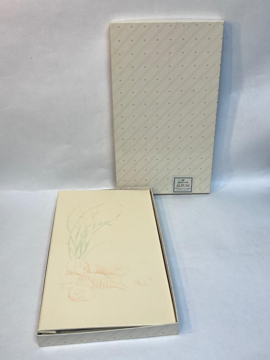 Retro 1982 Hallmark Photo Album Coastal Beachy Decor Seashell and Grass Embossed Cover. In good unused condition. Has extra pages included and the original box.