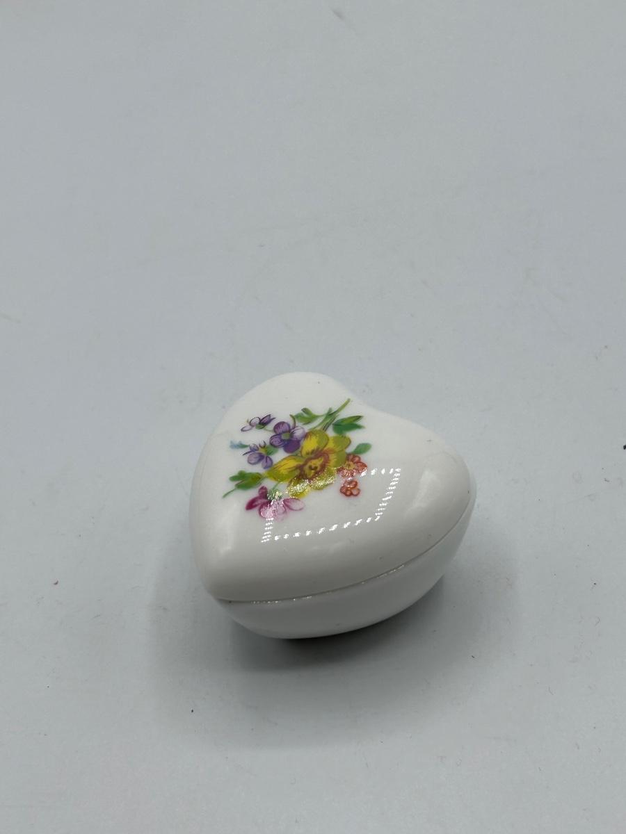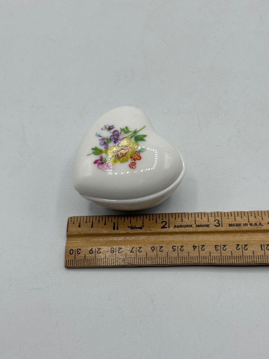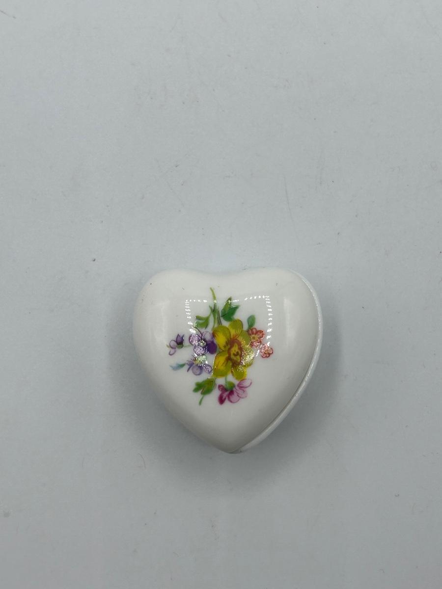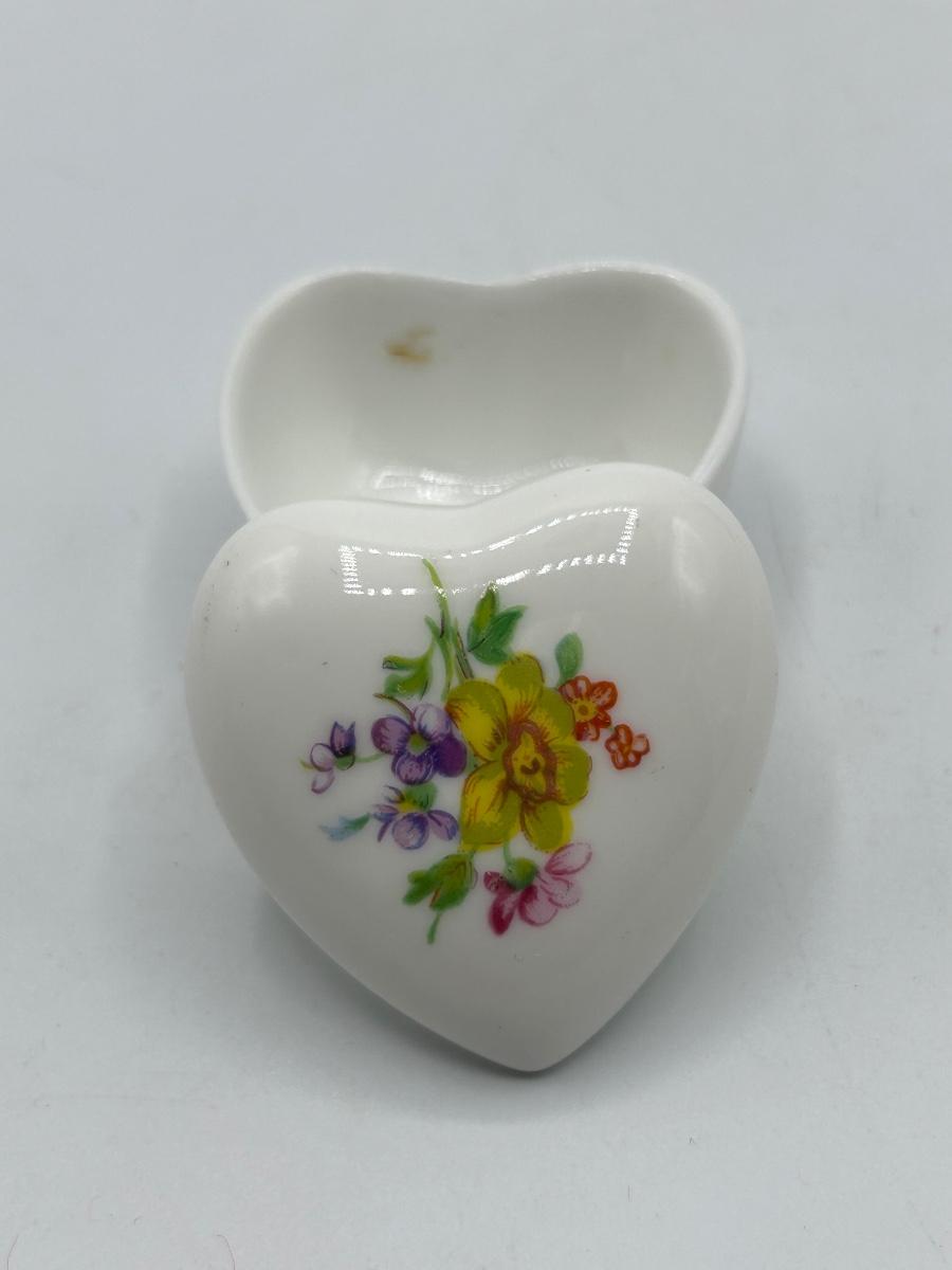 Small Flower Floral Painted Heart Shaped Trinket Dish Bone China. In good vintage condition. Light wear, no chips.