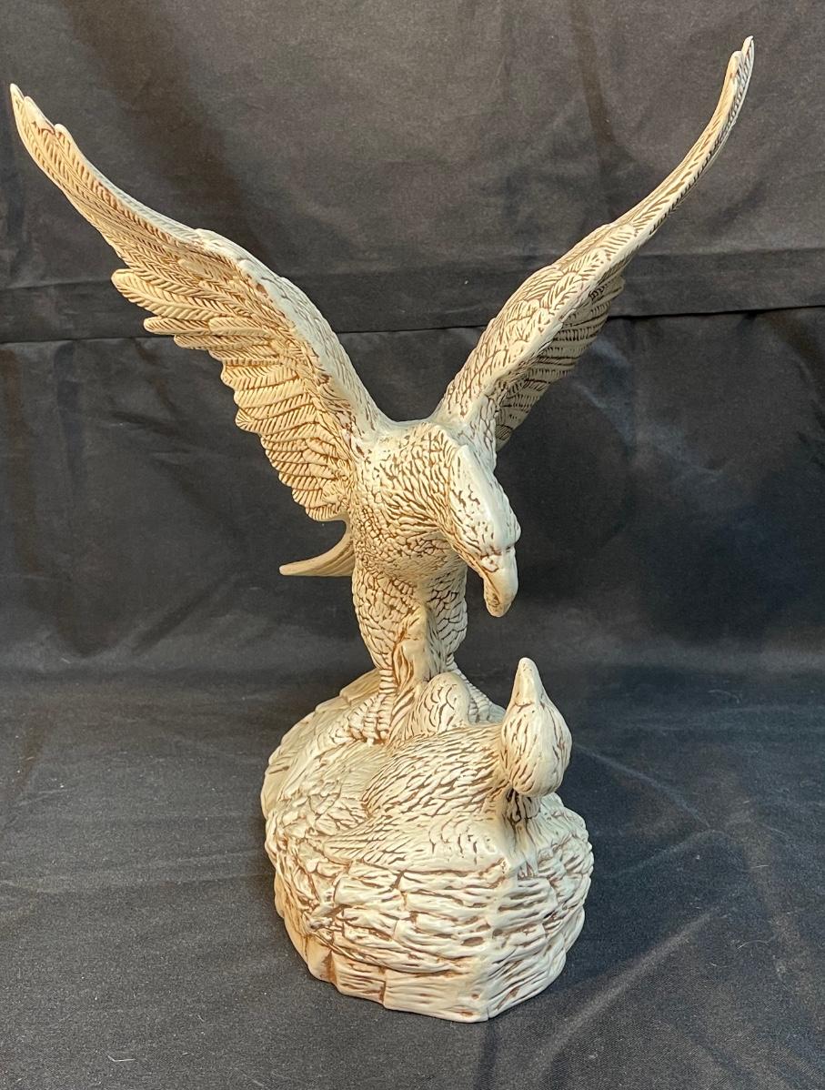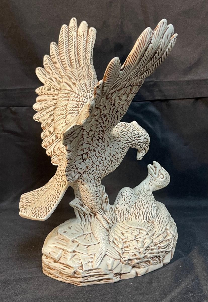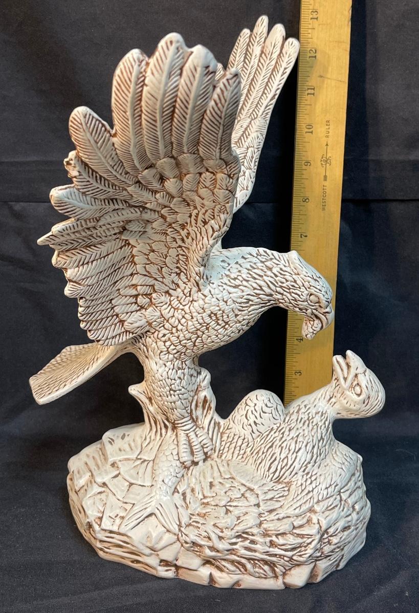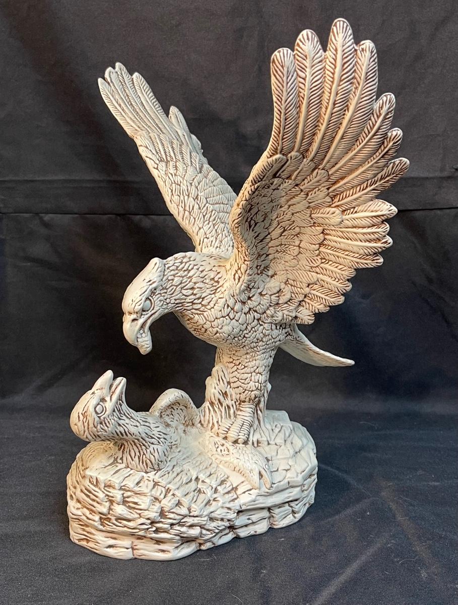 Ceramic Statue Figurine Eagle Feed Chick Eaglette 13" Tall Hawk Bird Figurine