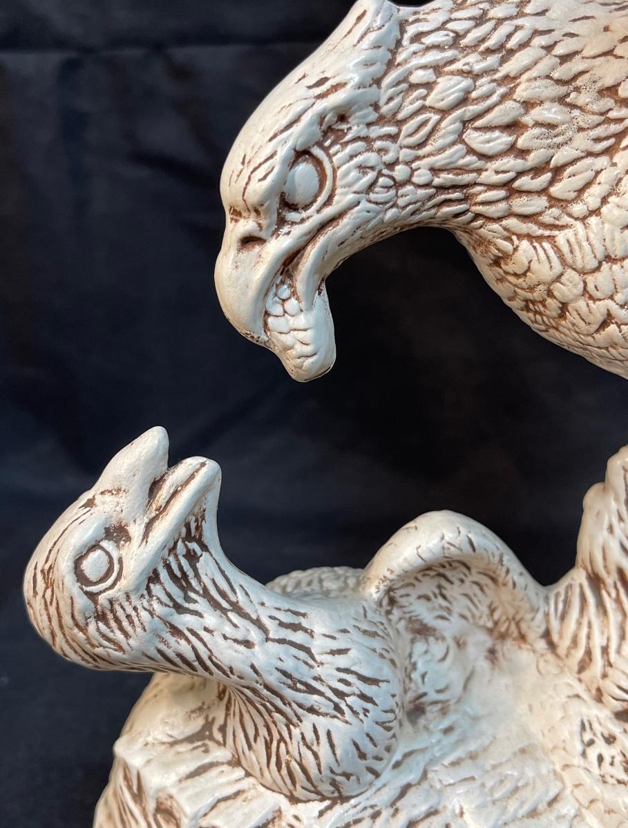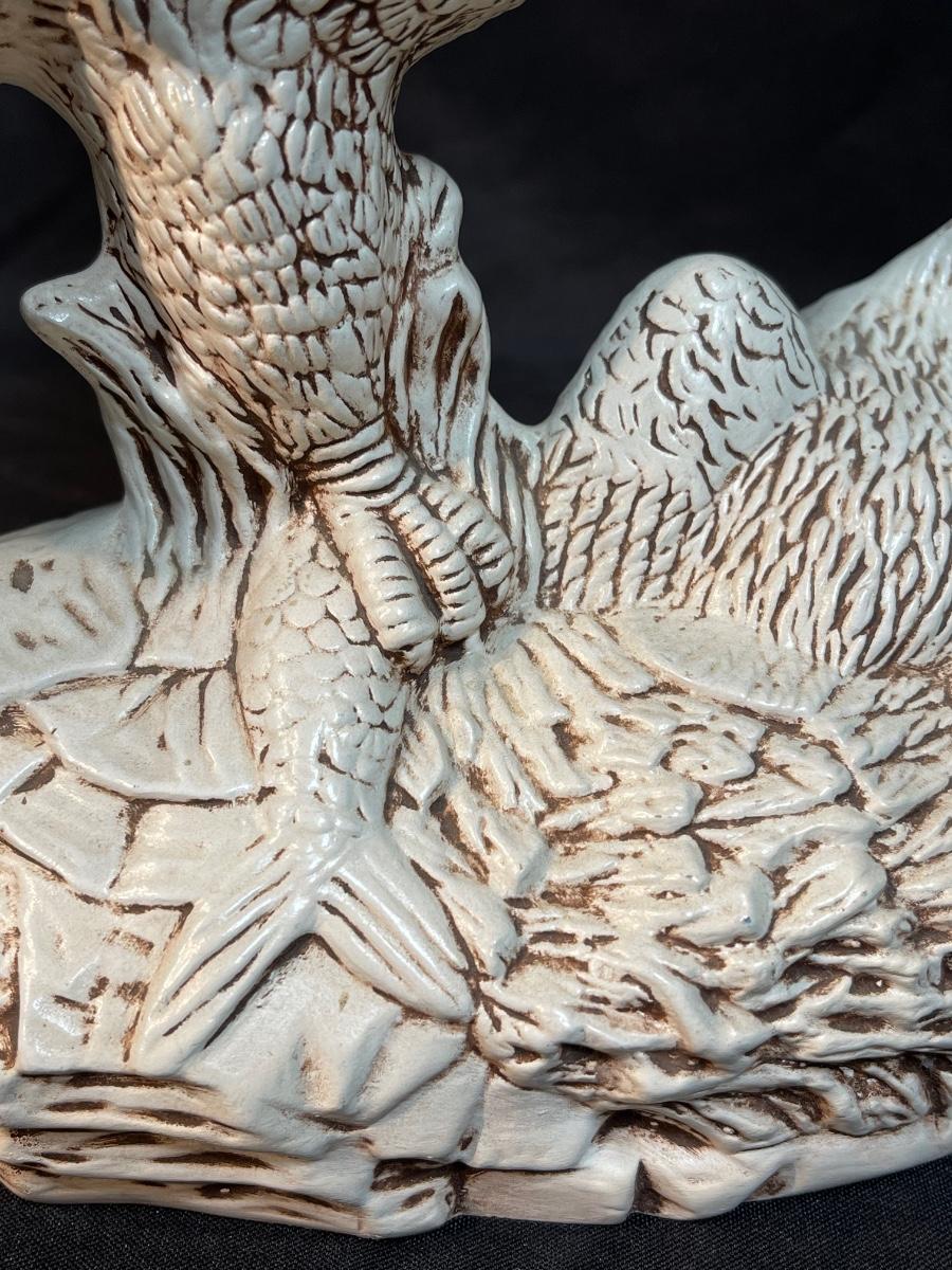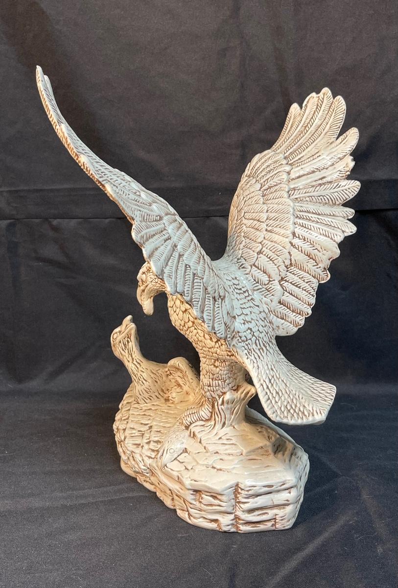 Ceramic Statue Figurine Eagle Feed Chick Eaglette 13" Tall Hawk Bird Figurine