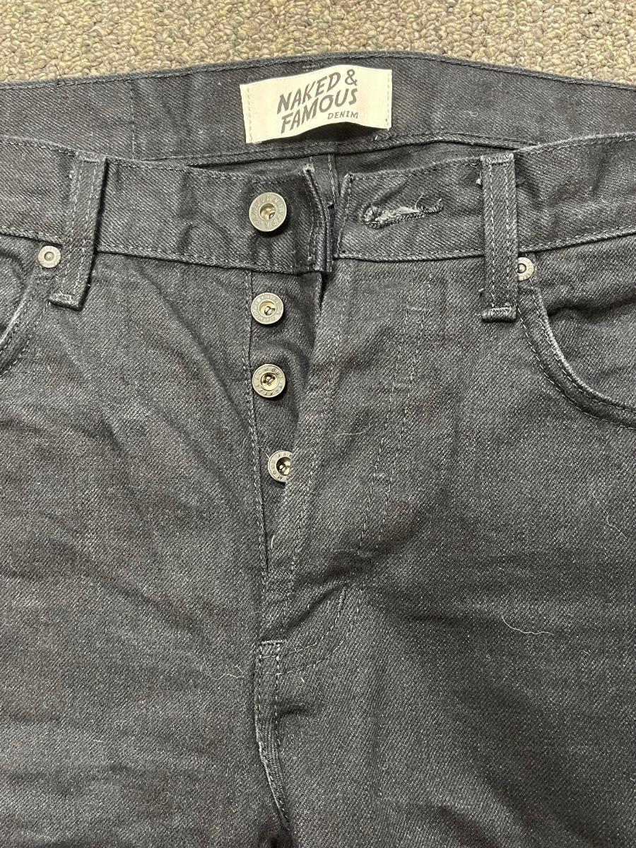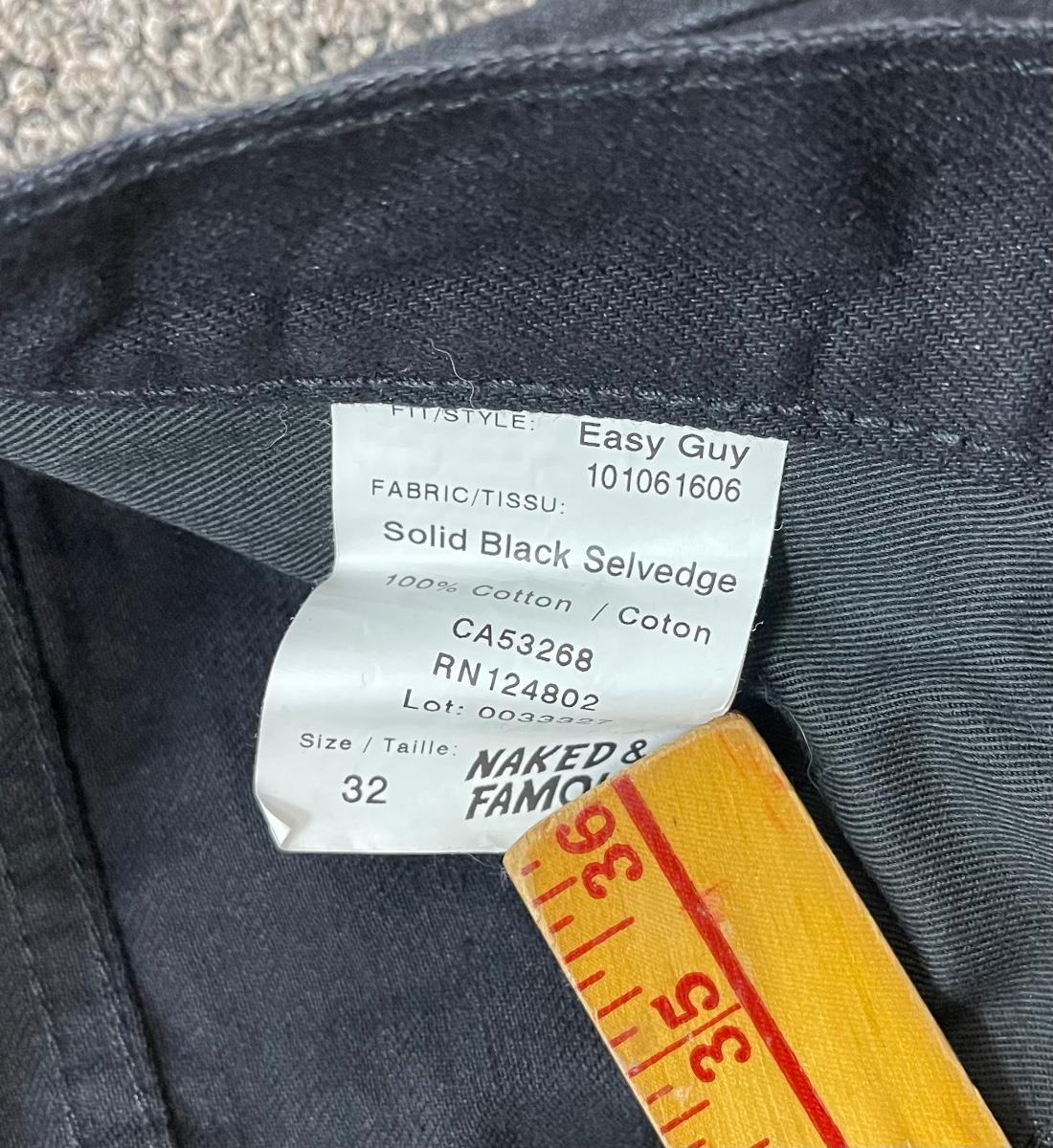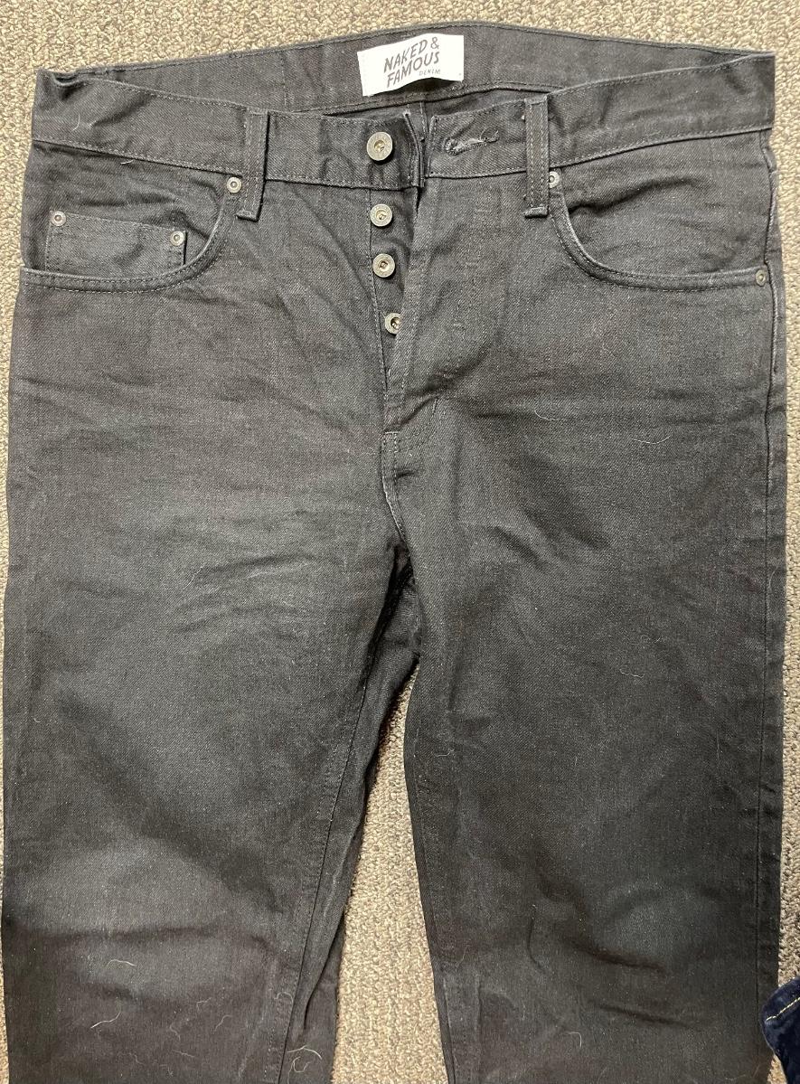 Naked & Famous Easy Guy Solid Black Selvedge Button Fly Jeans Men’s Size 32 100% Cotton