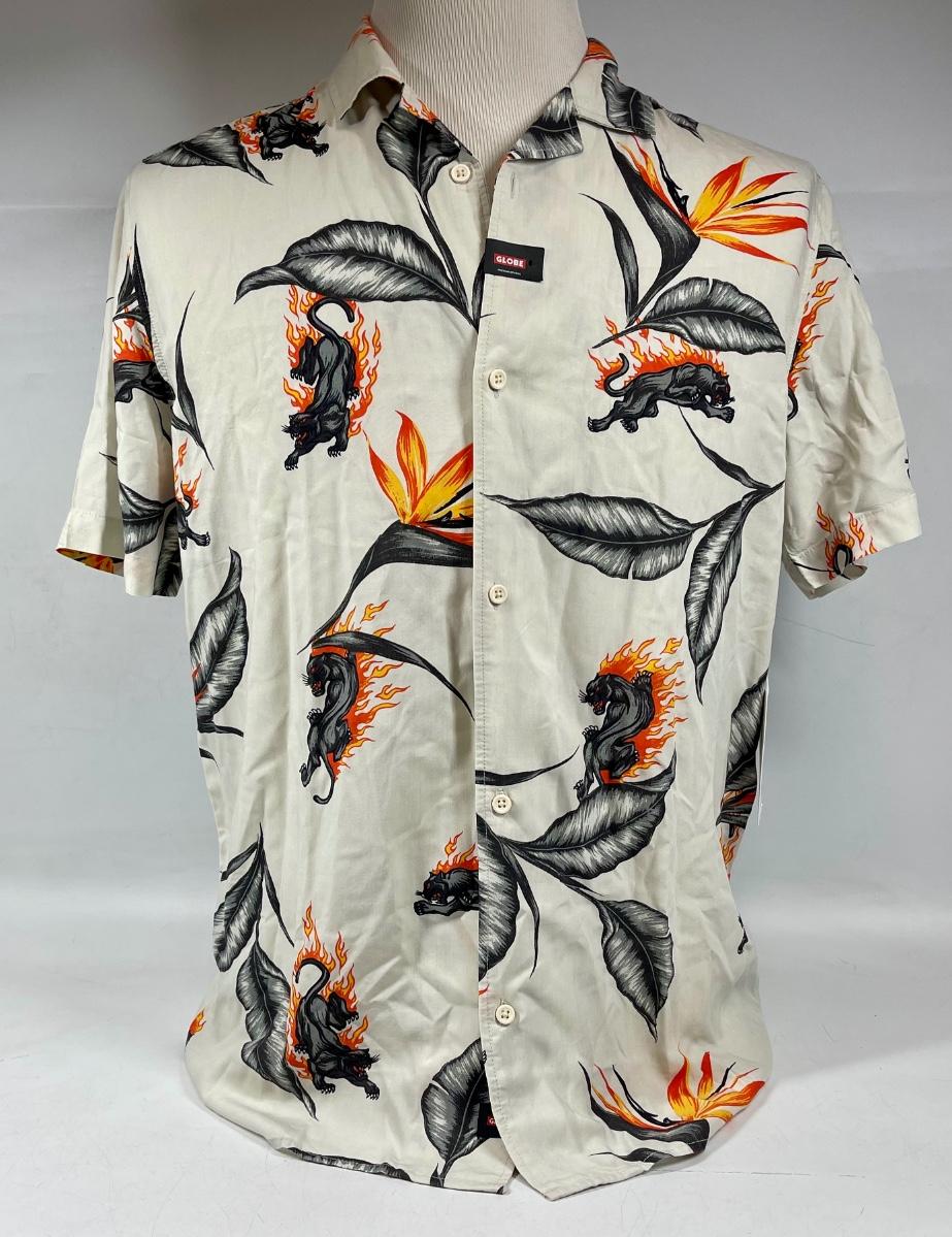 NWT GLOBE men's size M medium Hawaiian Style Camp Shirt Hibicus Panther