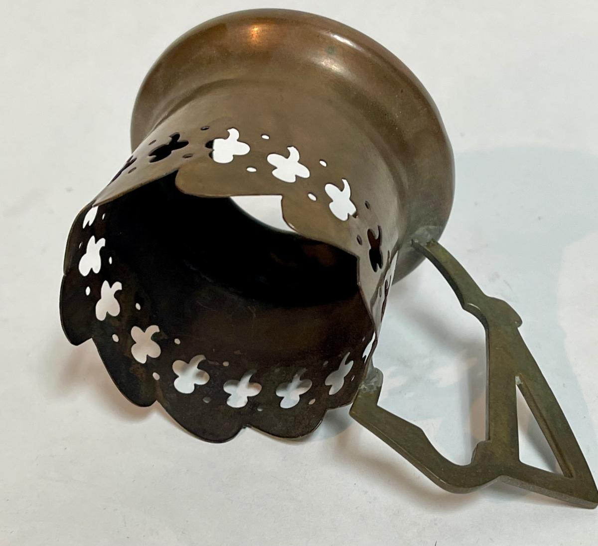 Material appears to be copper-based, see photos. Approx. 3" high and 3" diameter. No visible markings