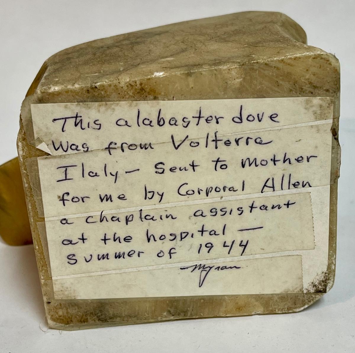 Keepsake Alabaster Dove sent home from Volterra Italy Summer of 1944