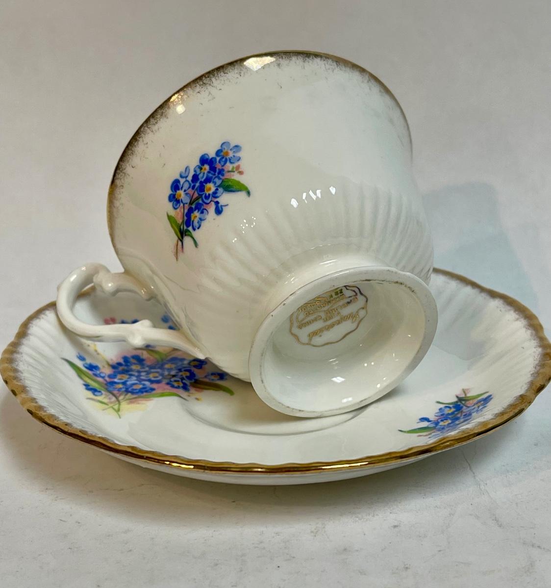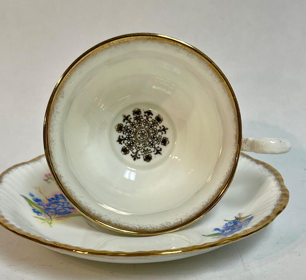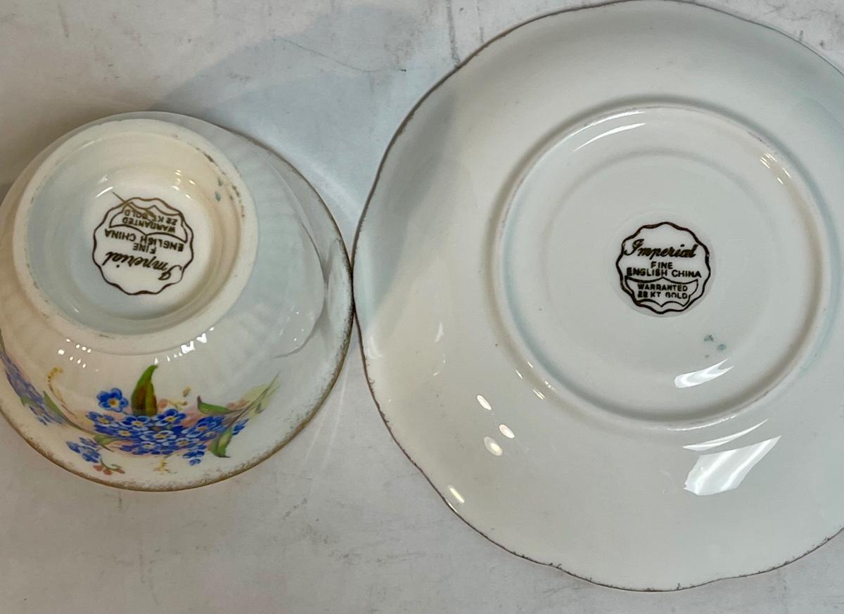 Imperial Fine Bone China Teacup and Saucer Blue Flowers 24K gold