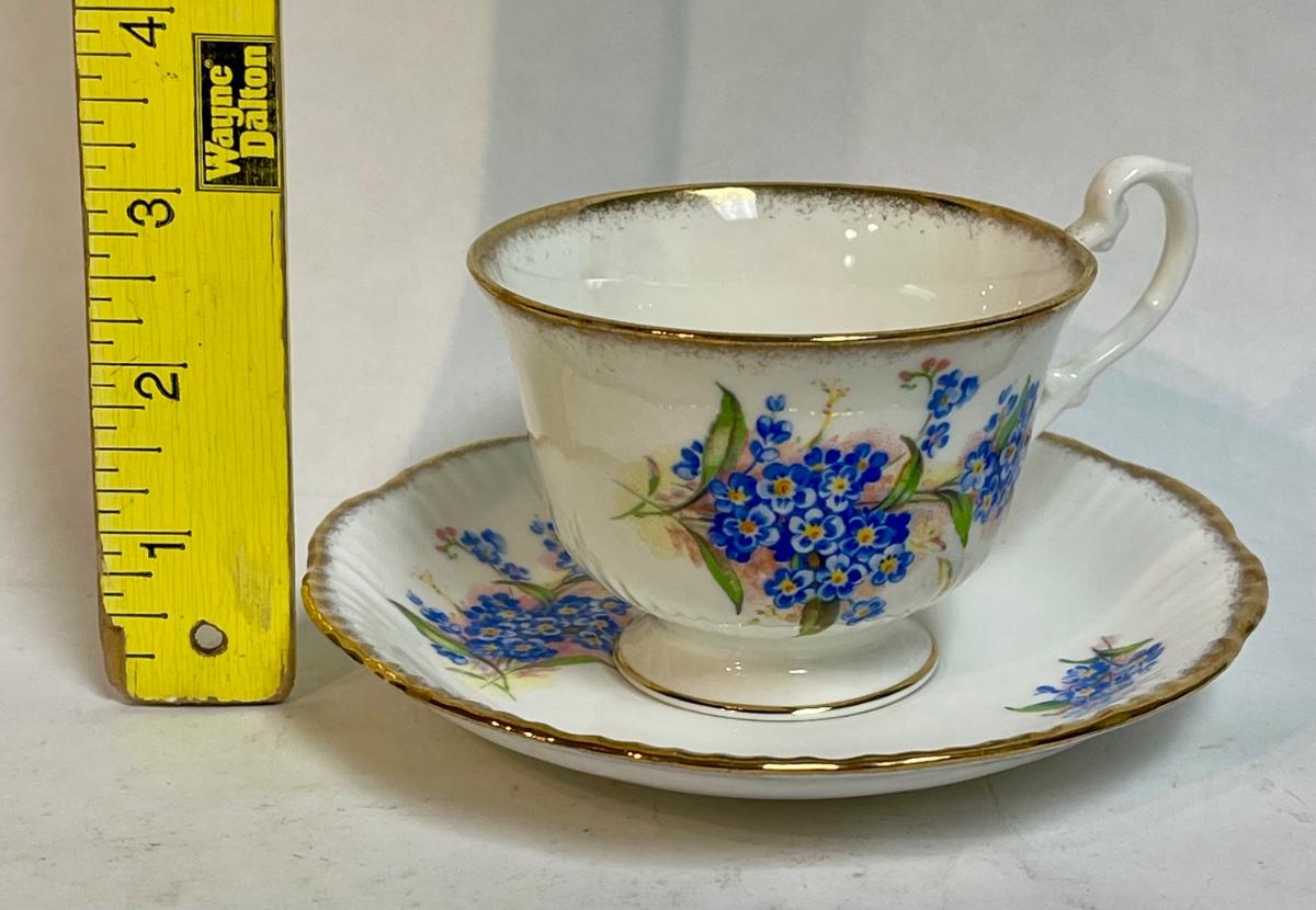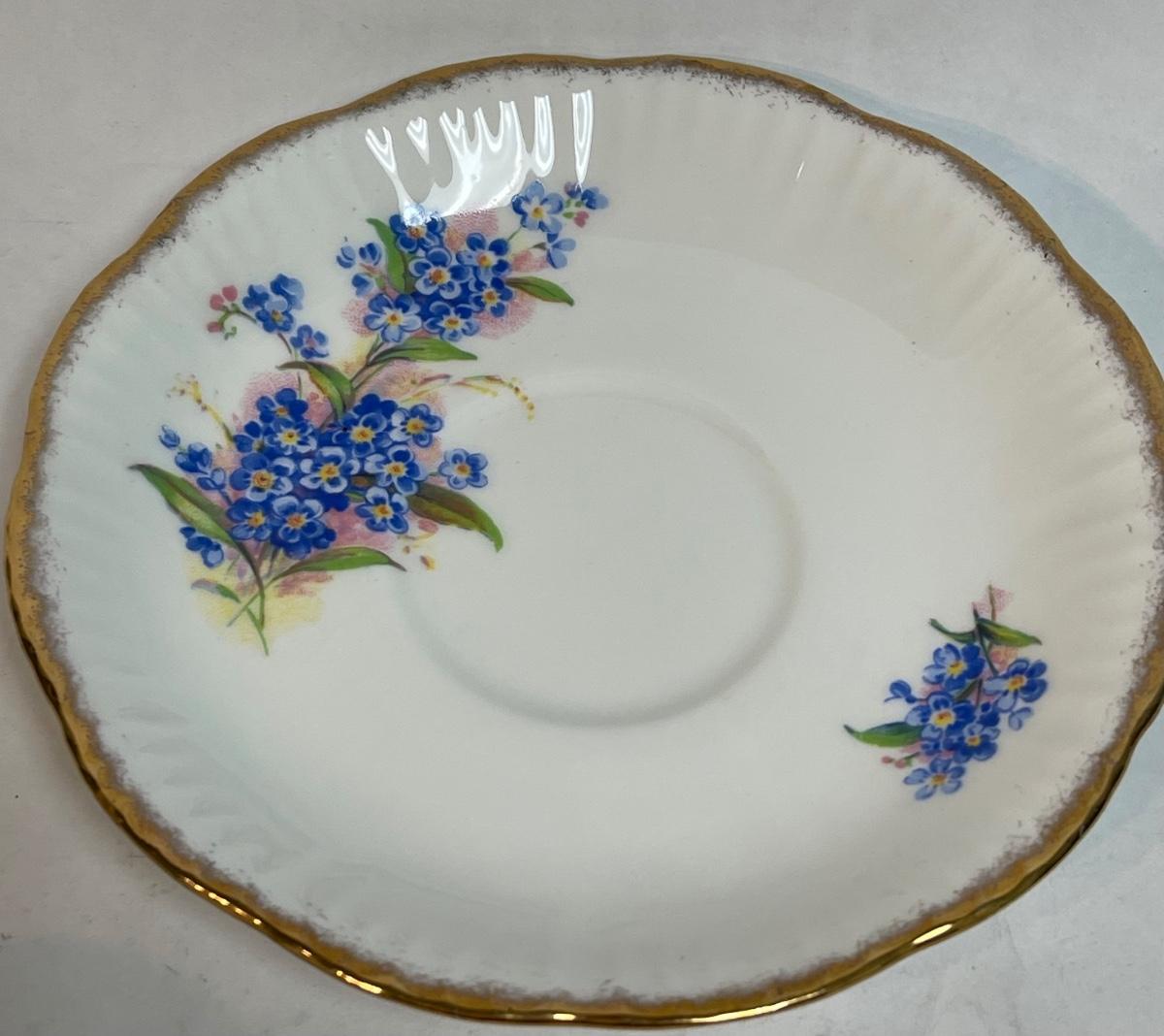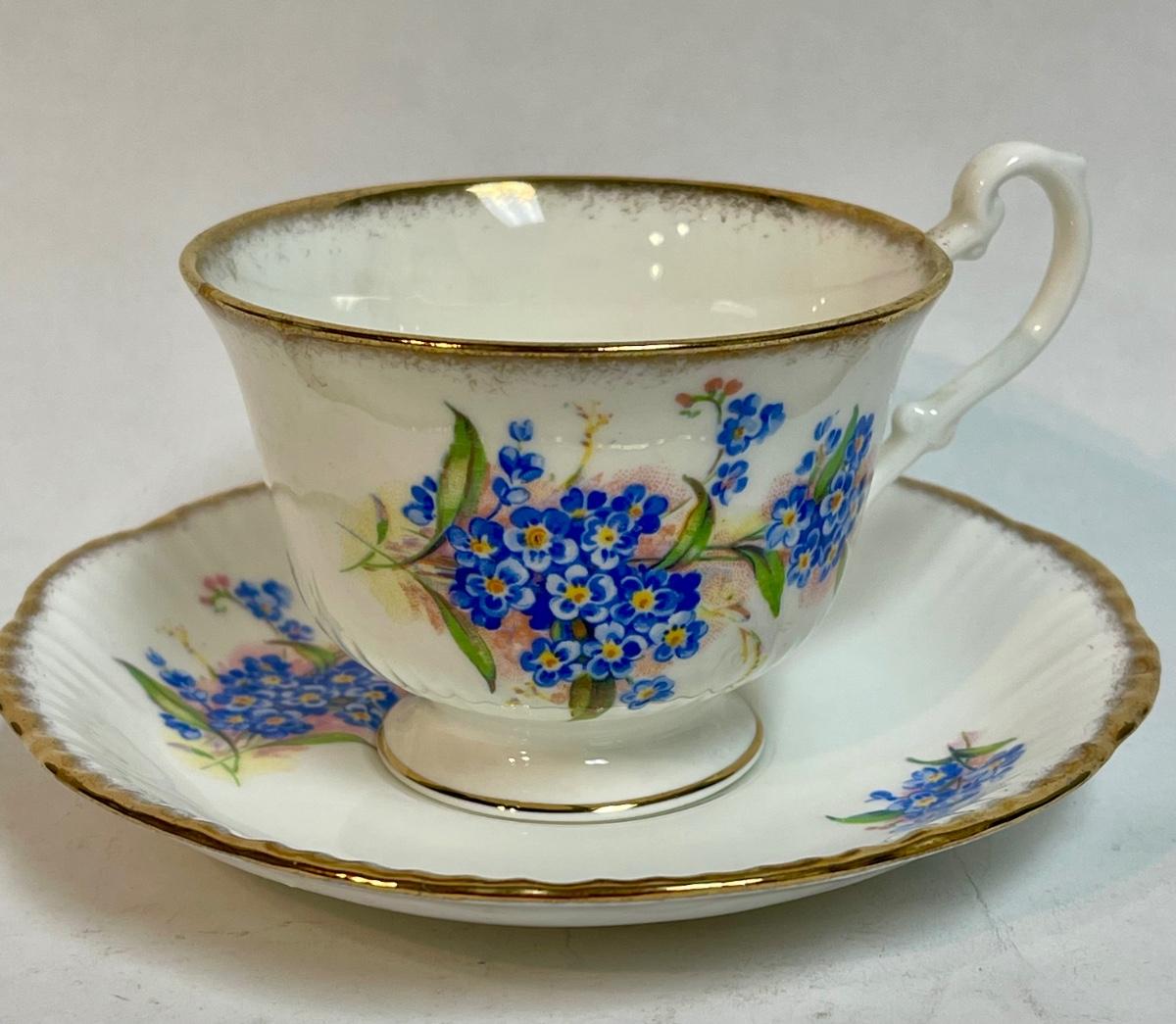 Imperial Fine Bone China Teacup and Saucer Blue Flowers 24K gold