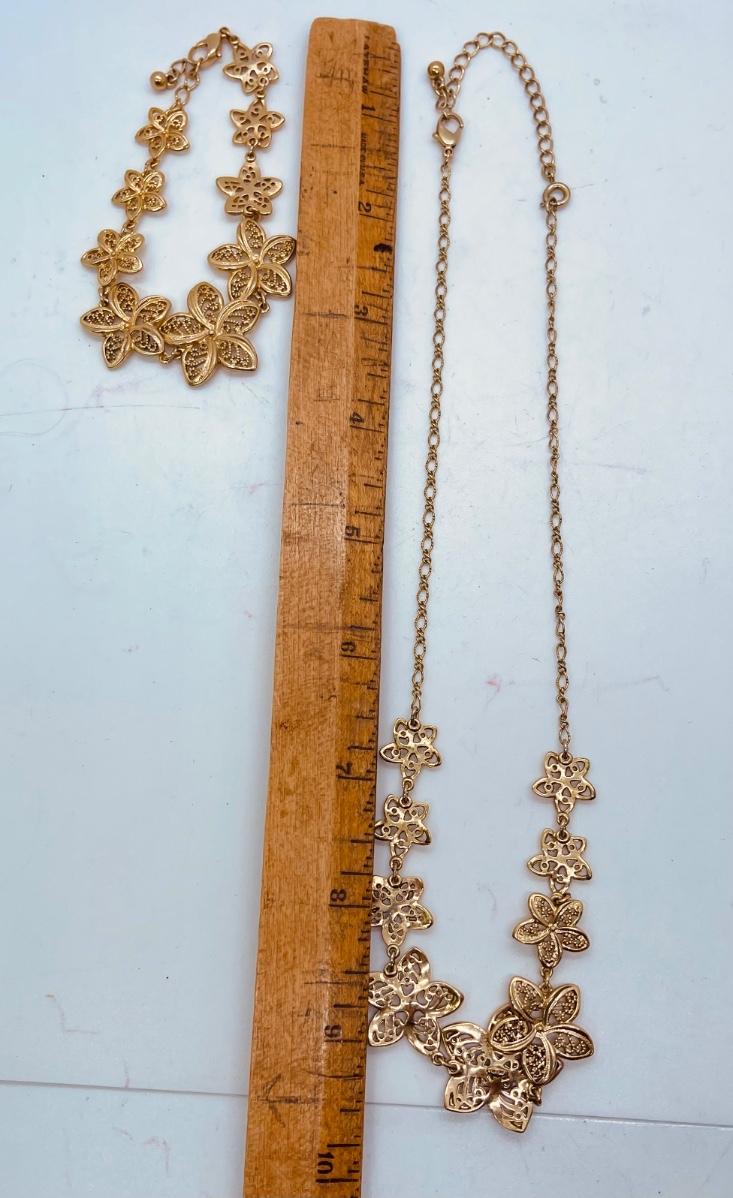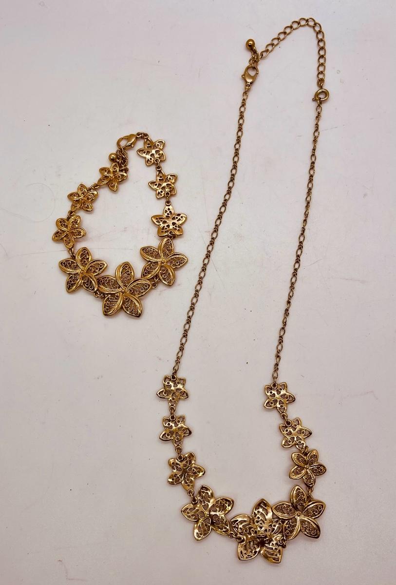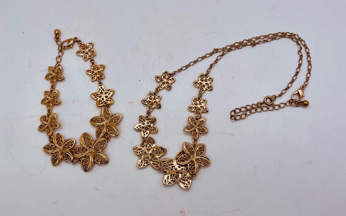Floral Gold-tone Necklace & Bracelet Set