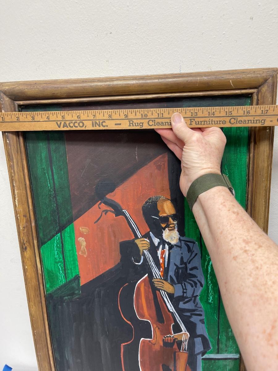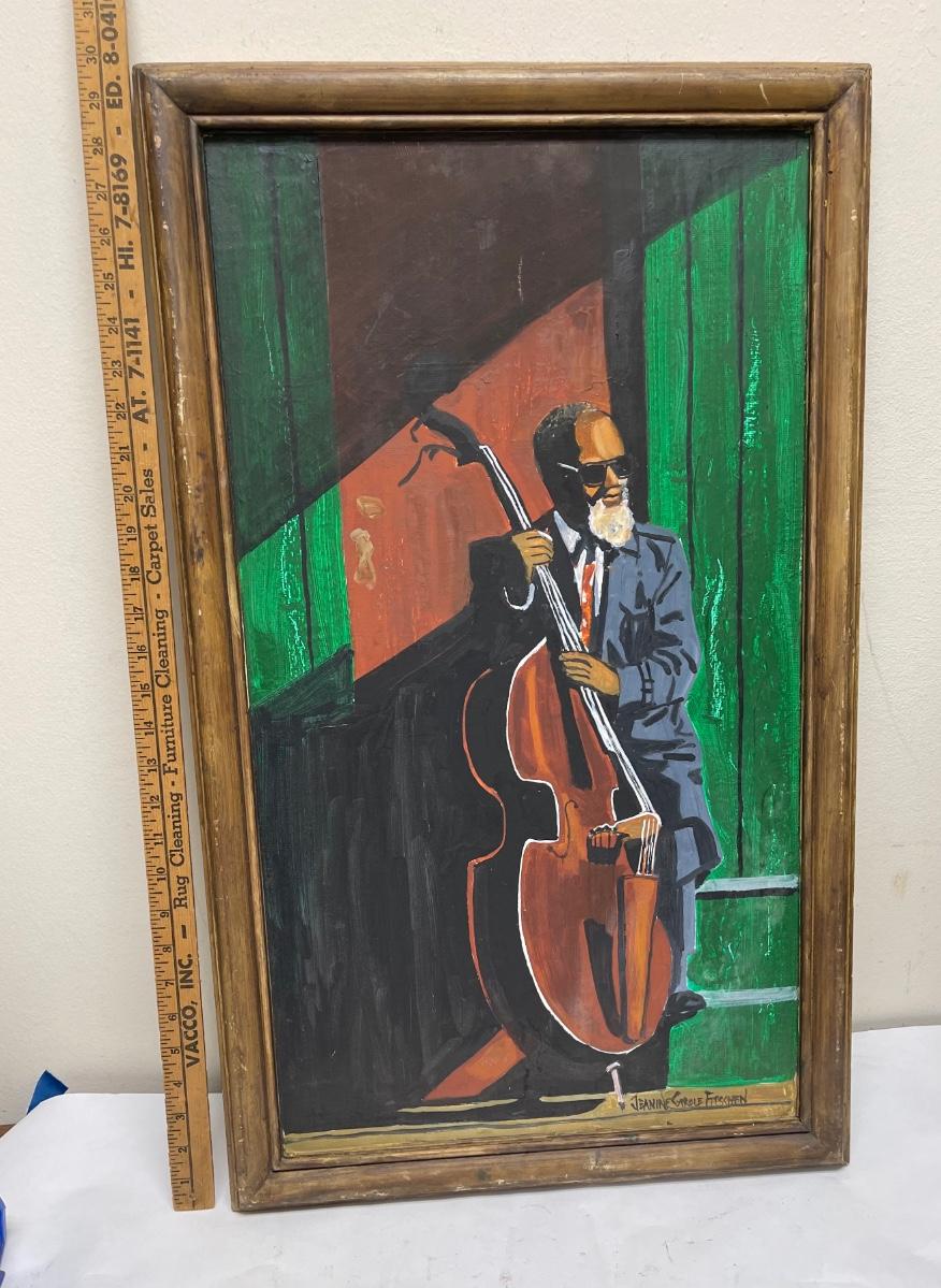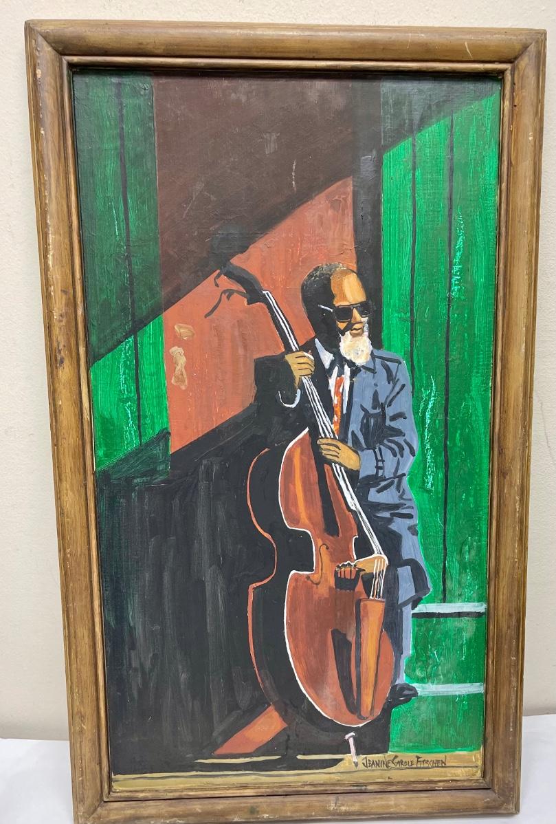 Painting of Jazz Musician Man Bass Player framed artwork Jessamine Carole Fitschen