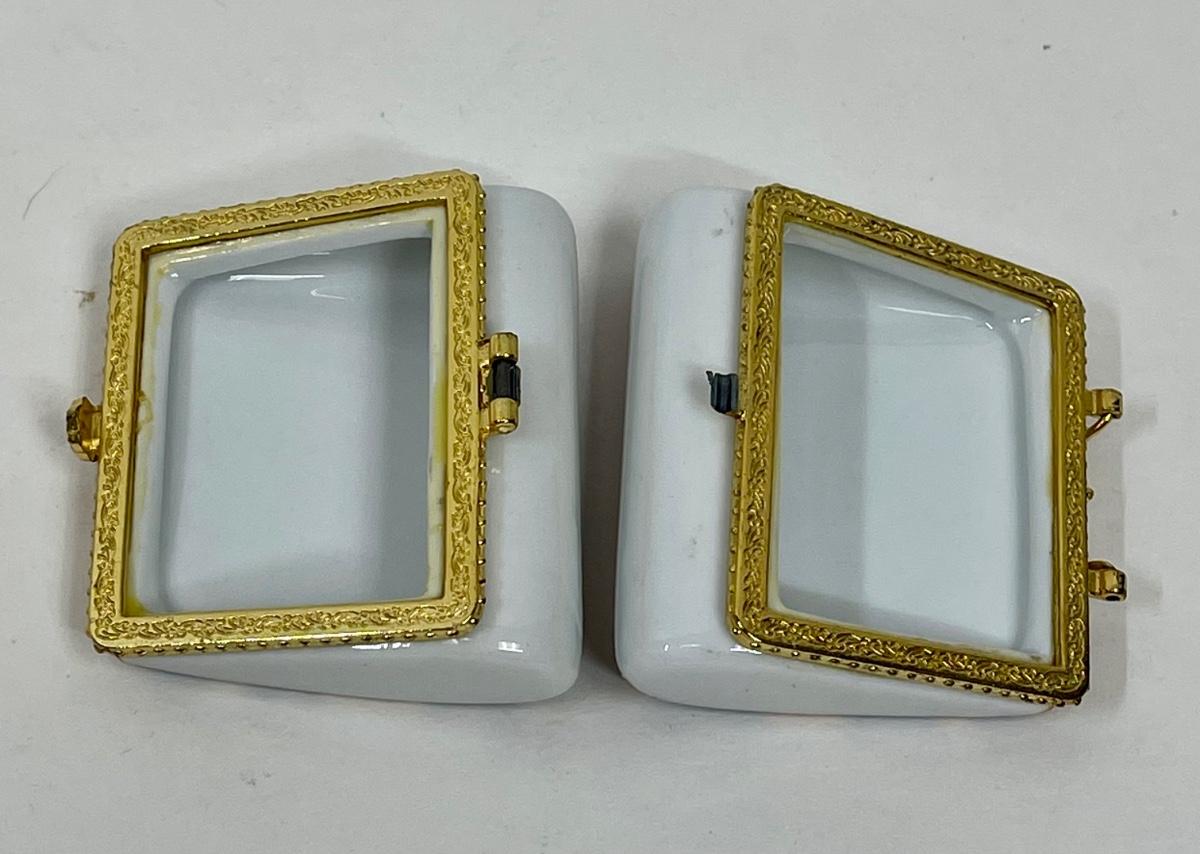 In good condition, except broken hinge. Approx. 2.5" tall.