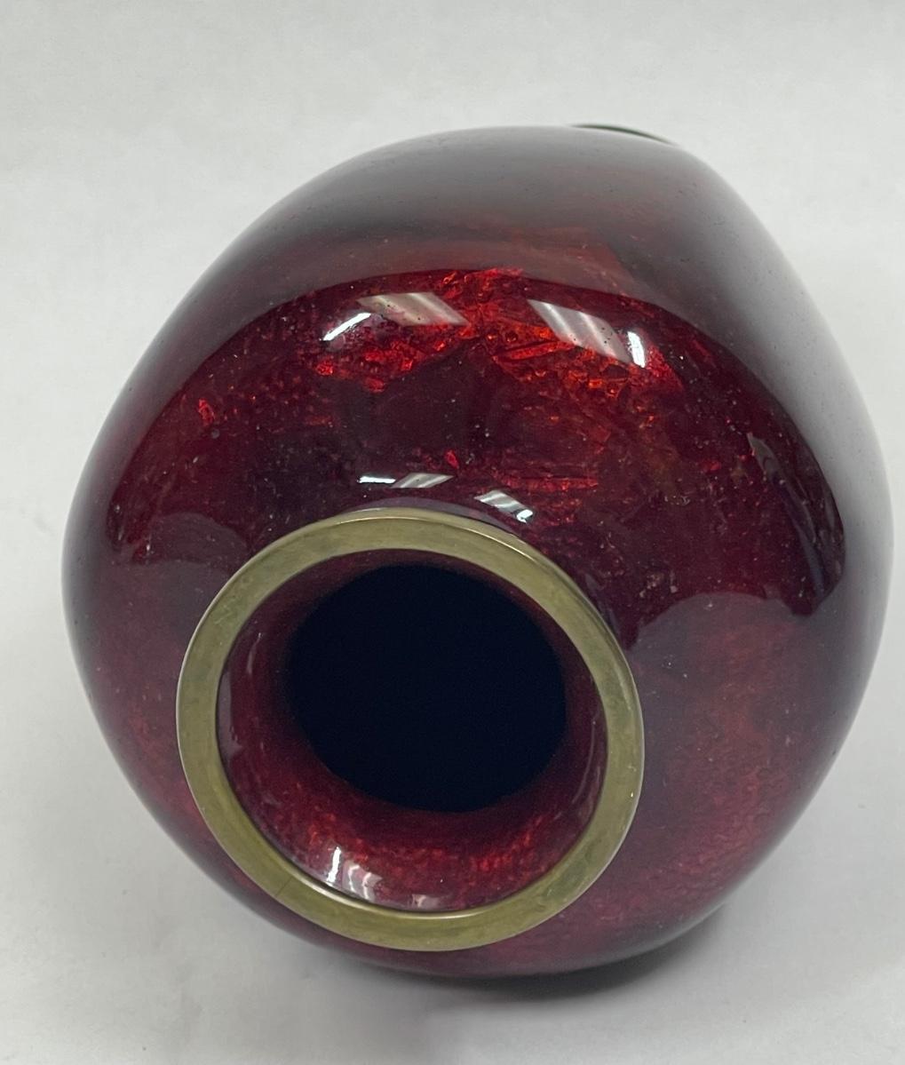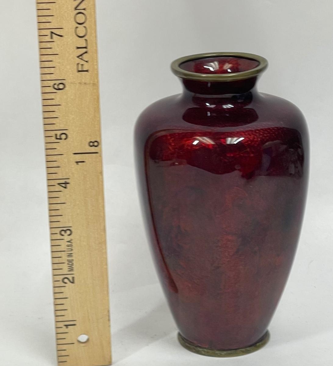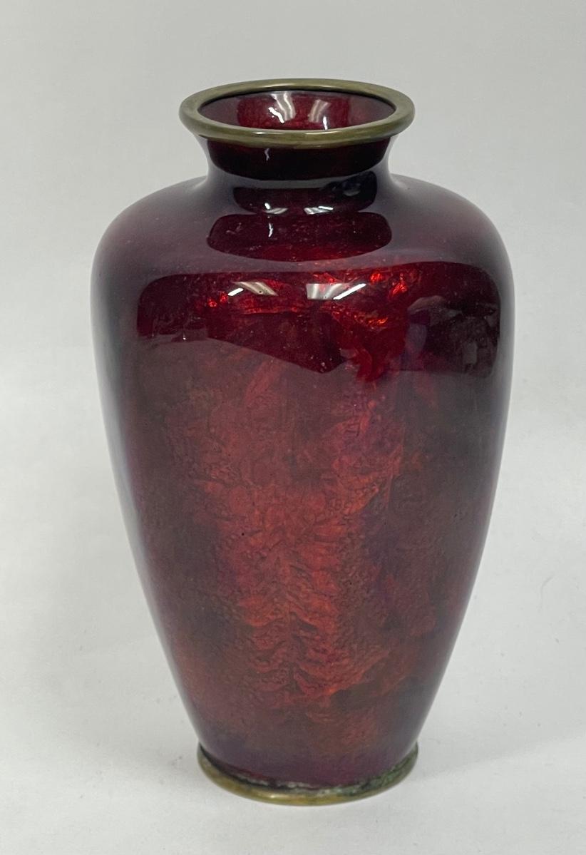 GINBARI Pigeon Blood Red Enamel Cloisonne Vase Antique Asian Meiji Period Japanese Urn Gilt