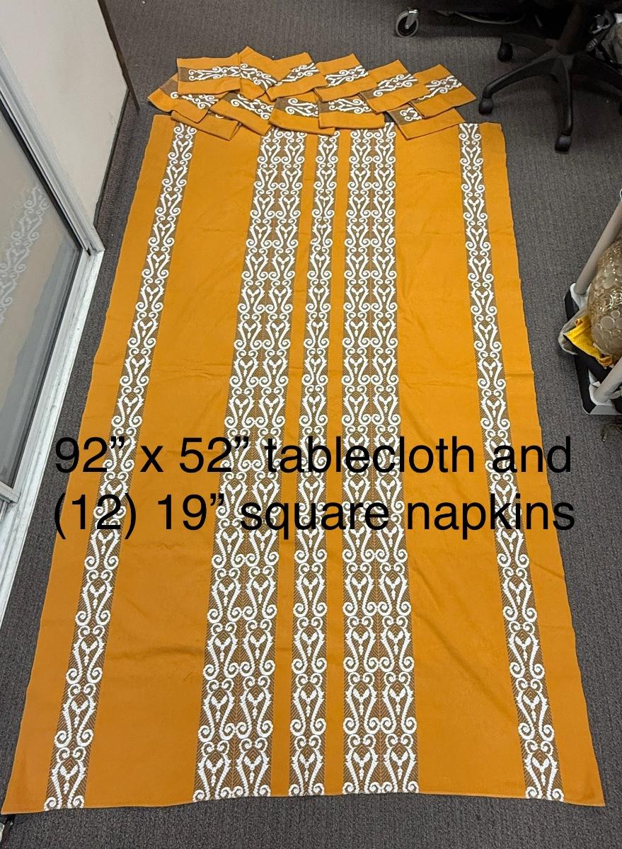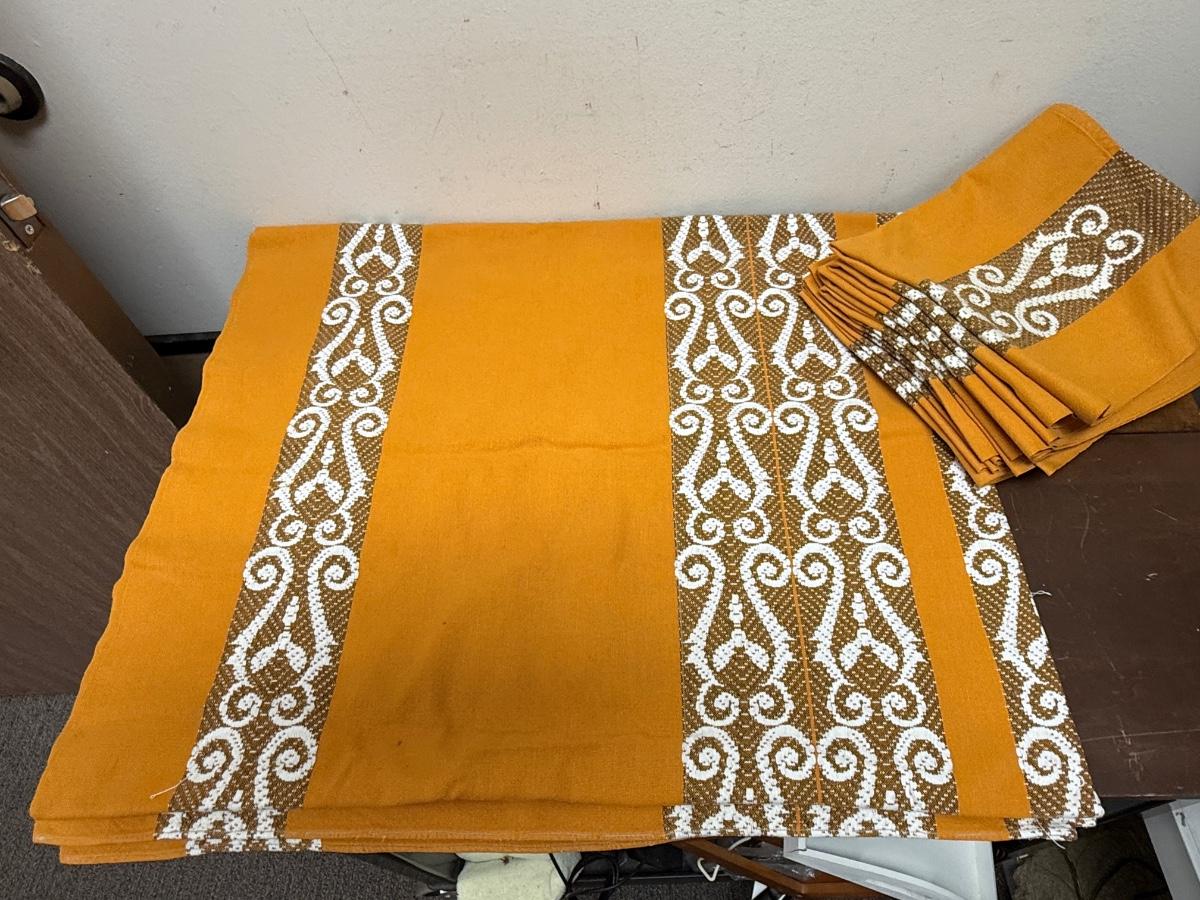 Vintage Tablecloth Orange Brown & White Jacquard Woven Cotton 60's - 70's MCM