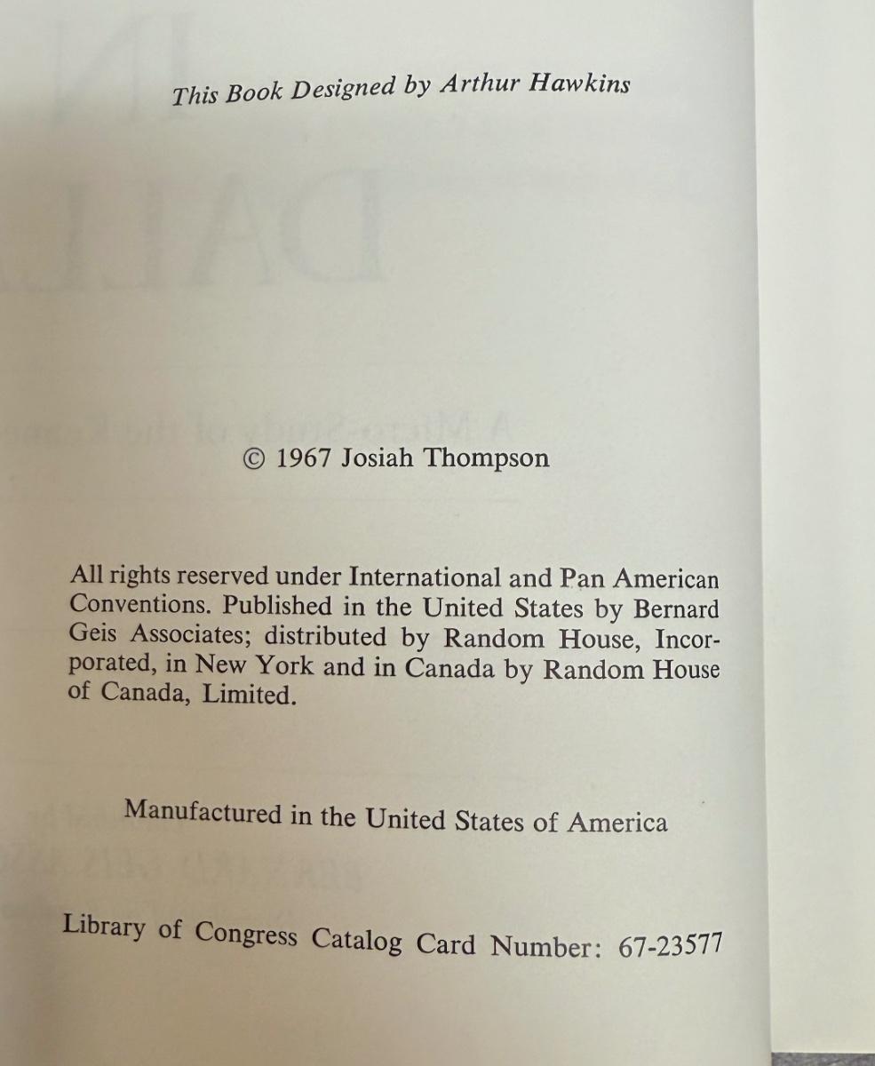 1st Edition Six Seconds in Dallas Hardback Book by Josiah Thompson 1967 micro study of Kennedy Assassination
