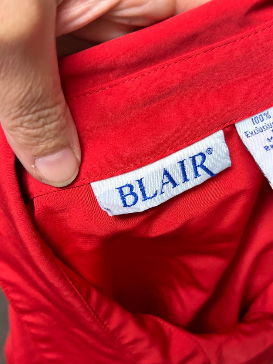 Vintage Retro Blair Medium Red Christmas Holiday Button Front Blouse. In good condition.