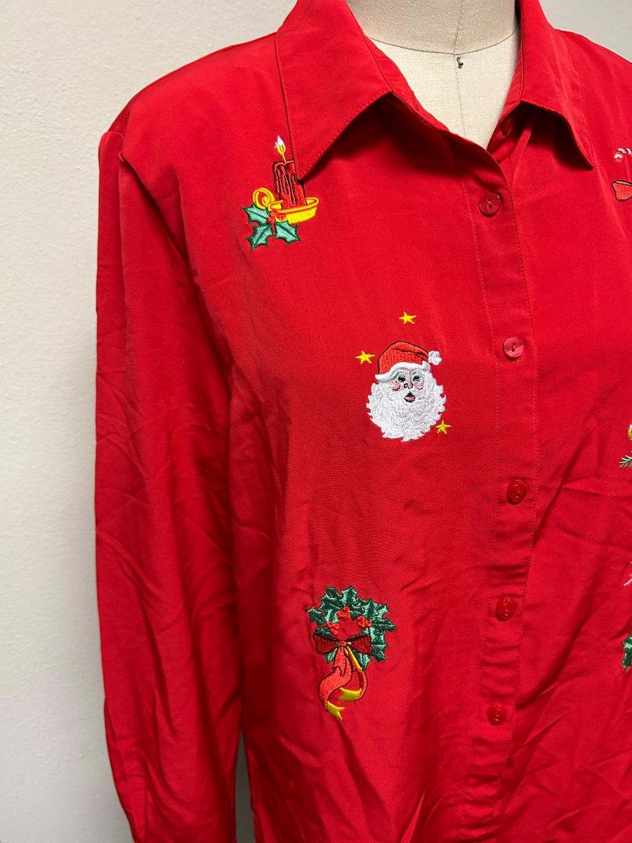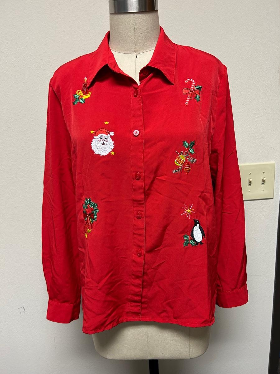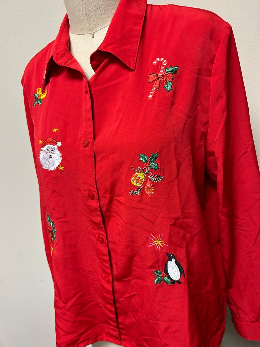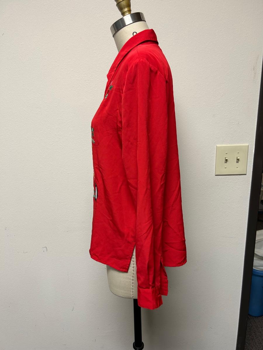 Vintage Retro Blair Medium Red Christmas Holiday Button Front Blouse