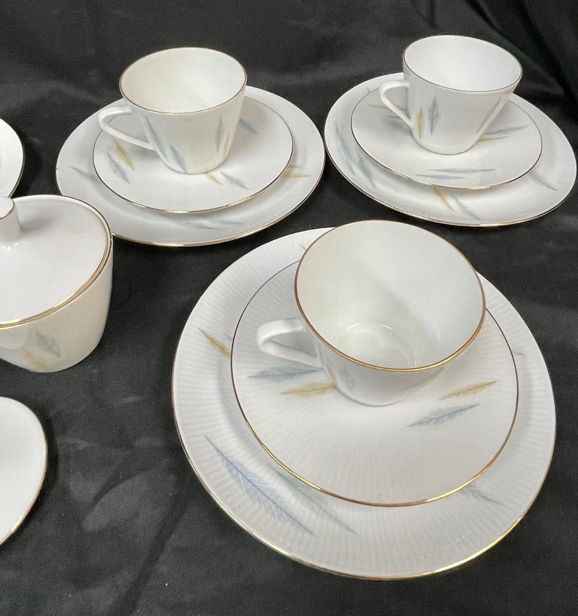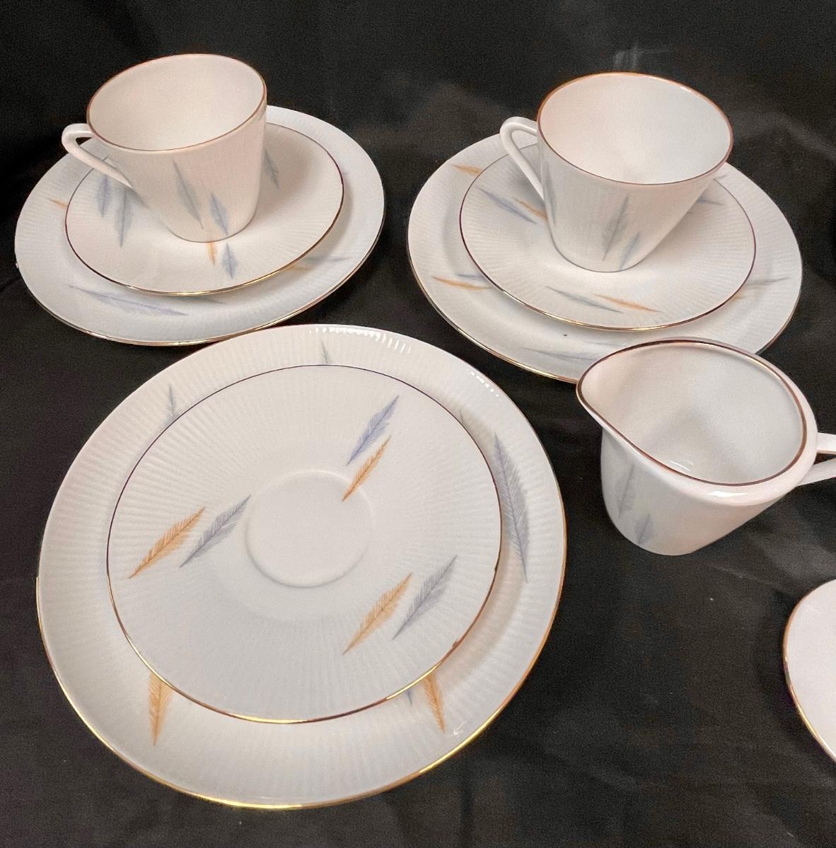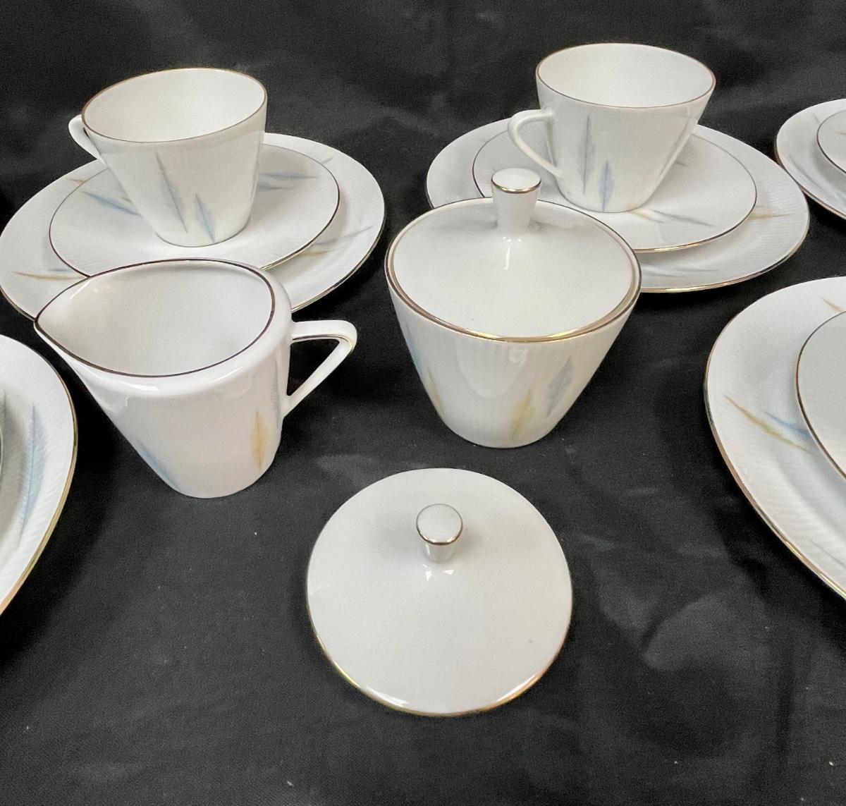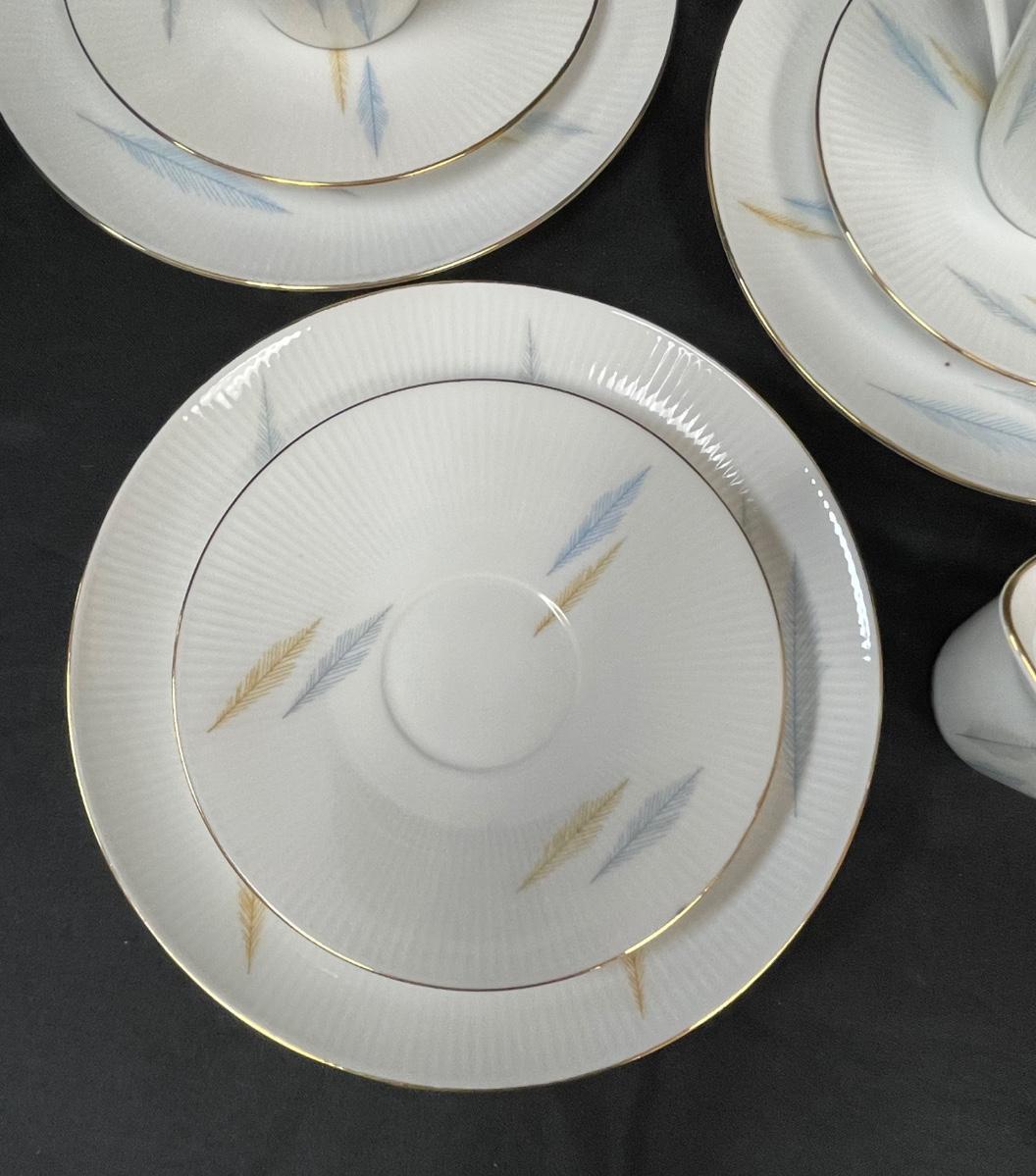 Vintage Seltmann Weiden Bavaria Monika Feather Leaf Patterned Teacup and Saucer Luncheon Plate Set. Incomplete set, missing a tea cup and there is an extra lid for sugar bowl. In overall good vintage condition.