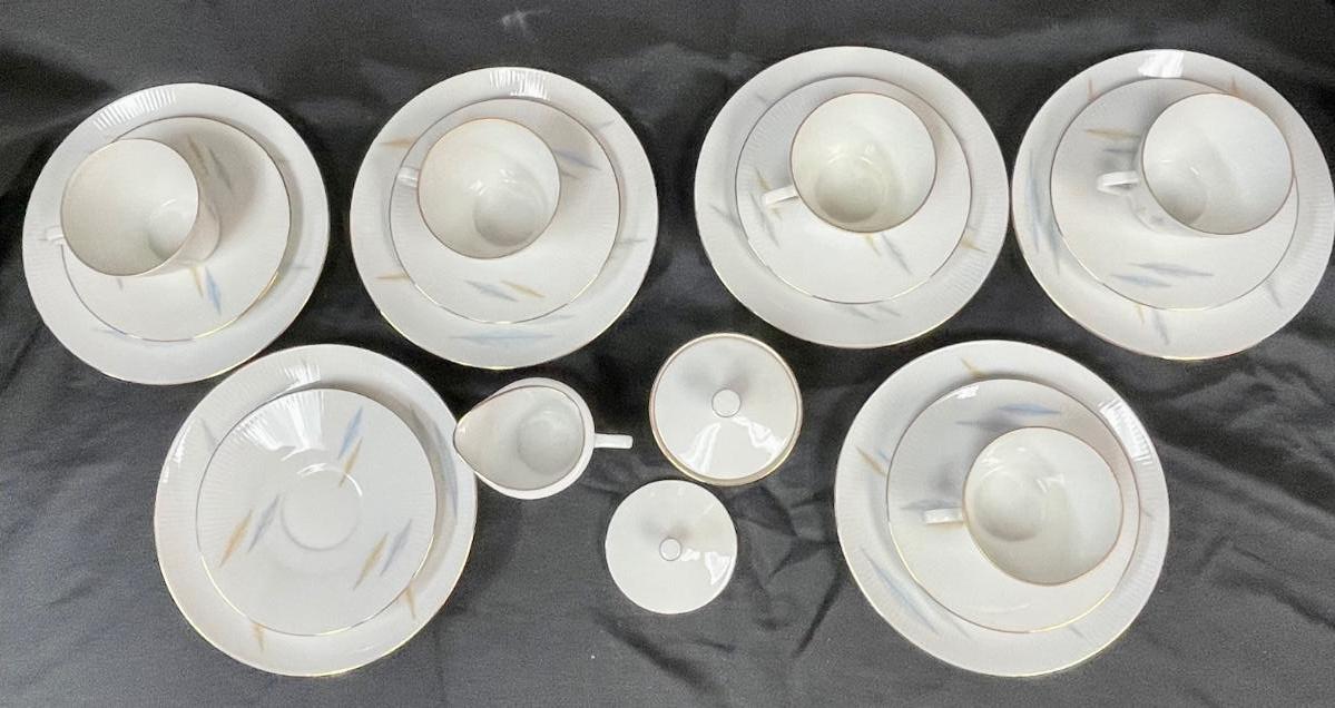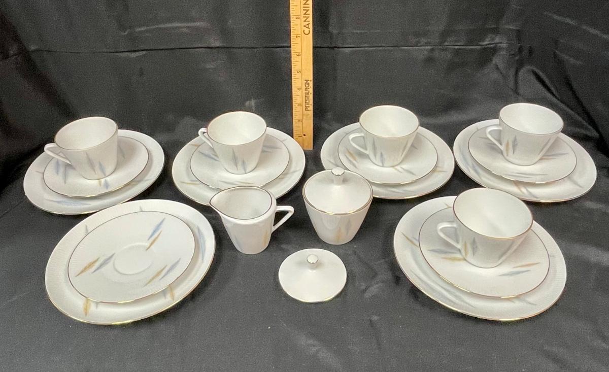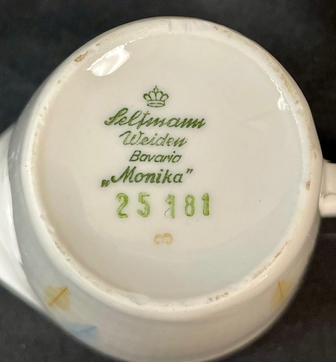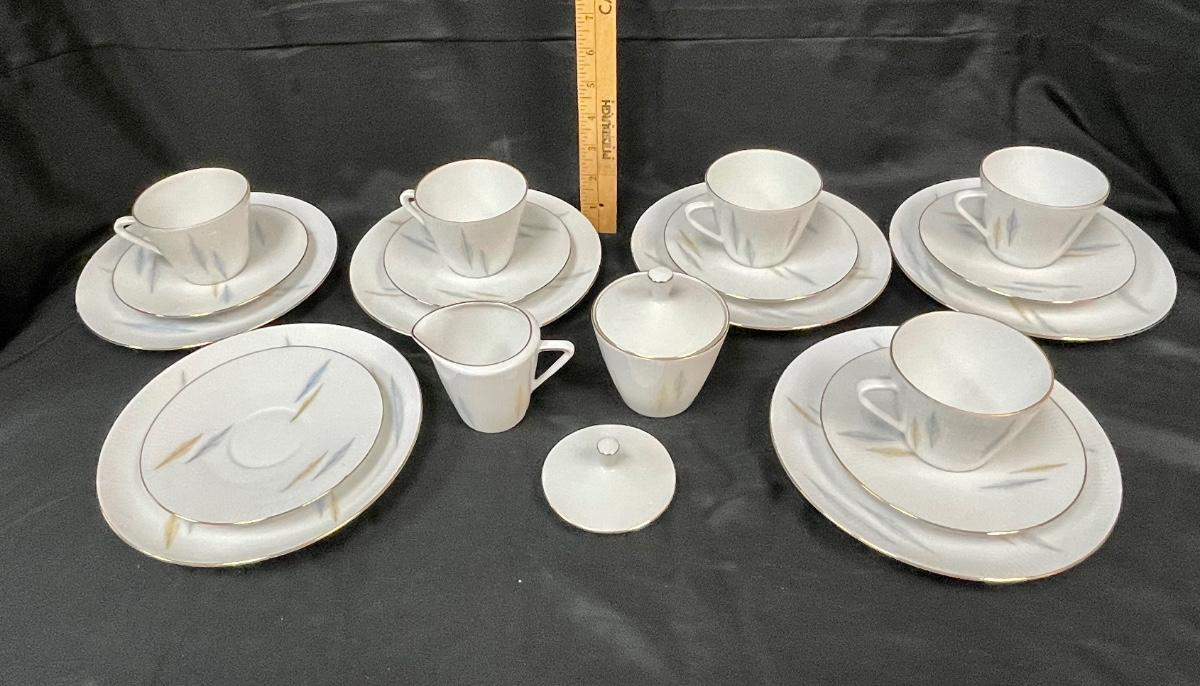 Vintage Seltmann Weiden Bavaria Monika Feather Leaf Patterned Teacup and Saucer Luncheon Plate Set. Incomplete set, missing a tea cup and there is an extra lid for sugar bowl. In overall good vintage condition.