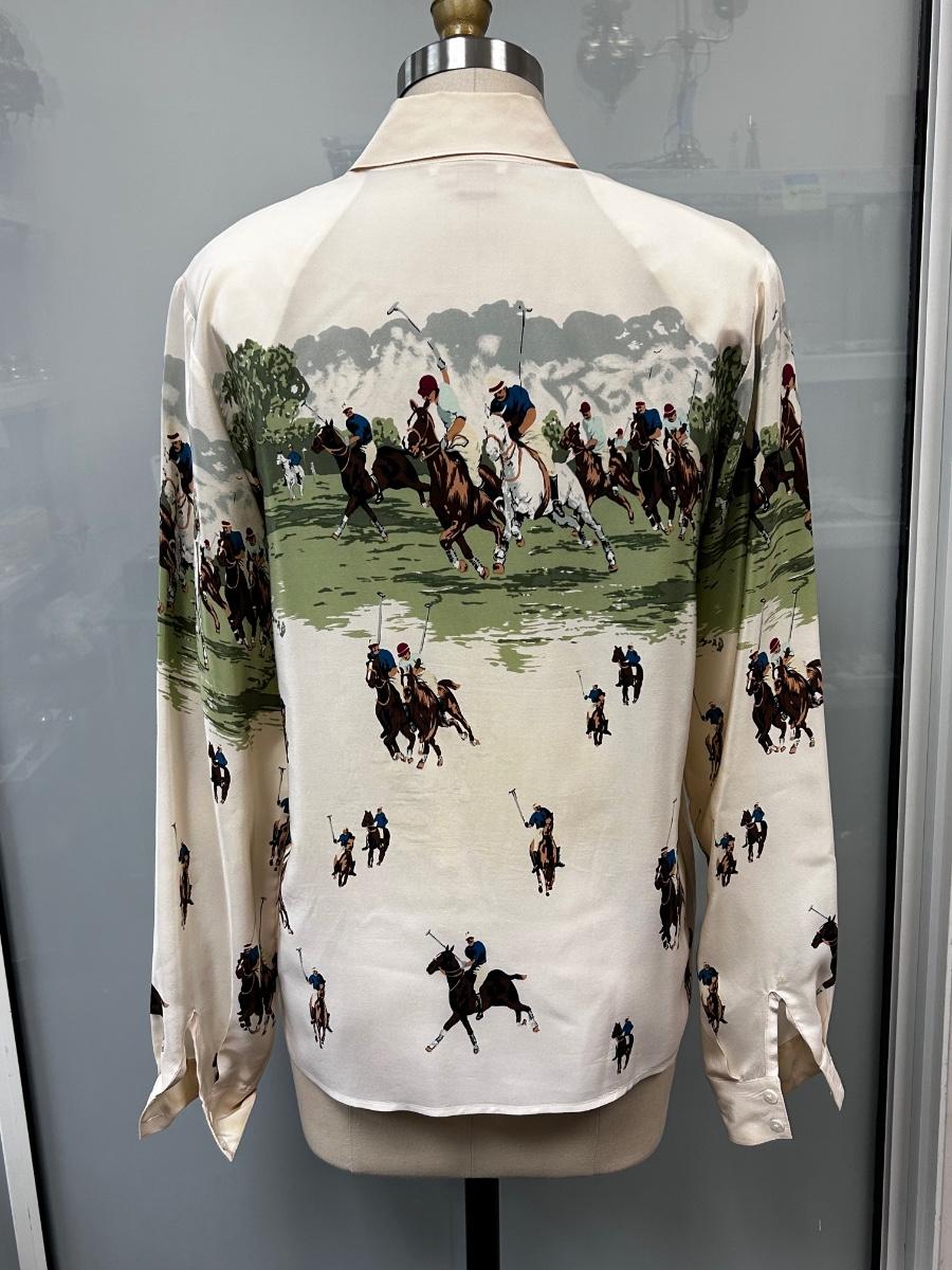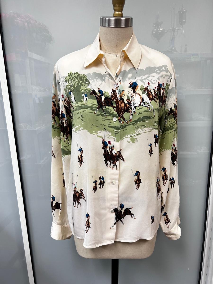 Studio 121 Size 6 100% Silk Equestrian Polo Players Button Front Blouse