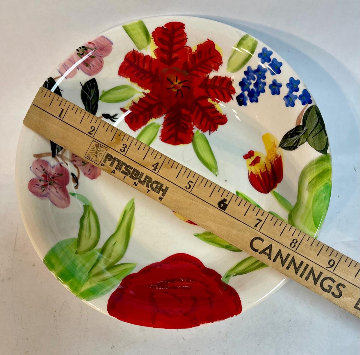 Approx. 8 1/2" across. Design has red, blue, and pink flowers. Made in China.