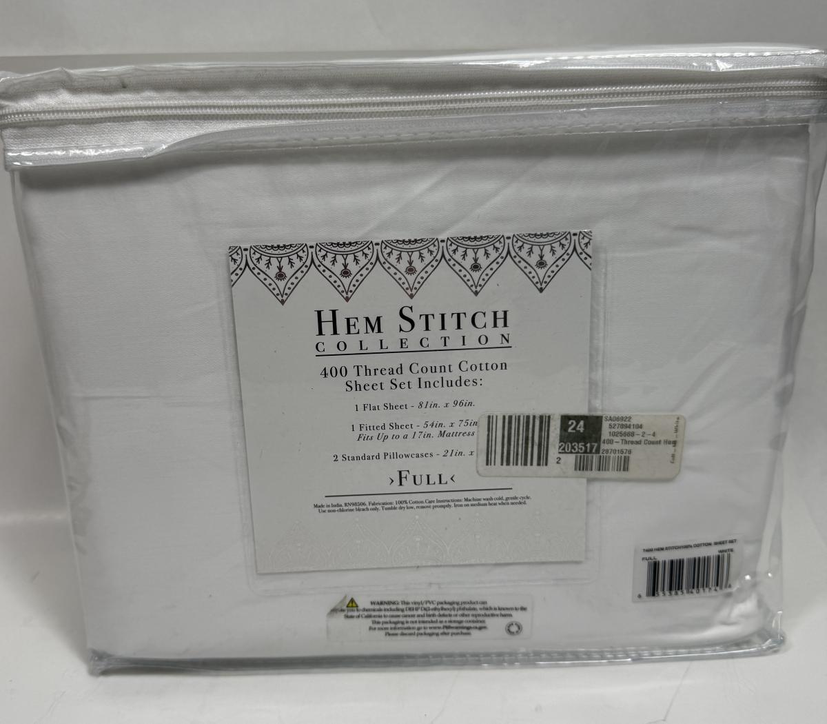 Hem Stitch Collection Full sheet set 500 thread count NEW