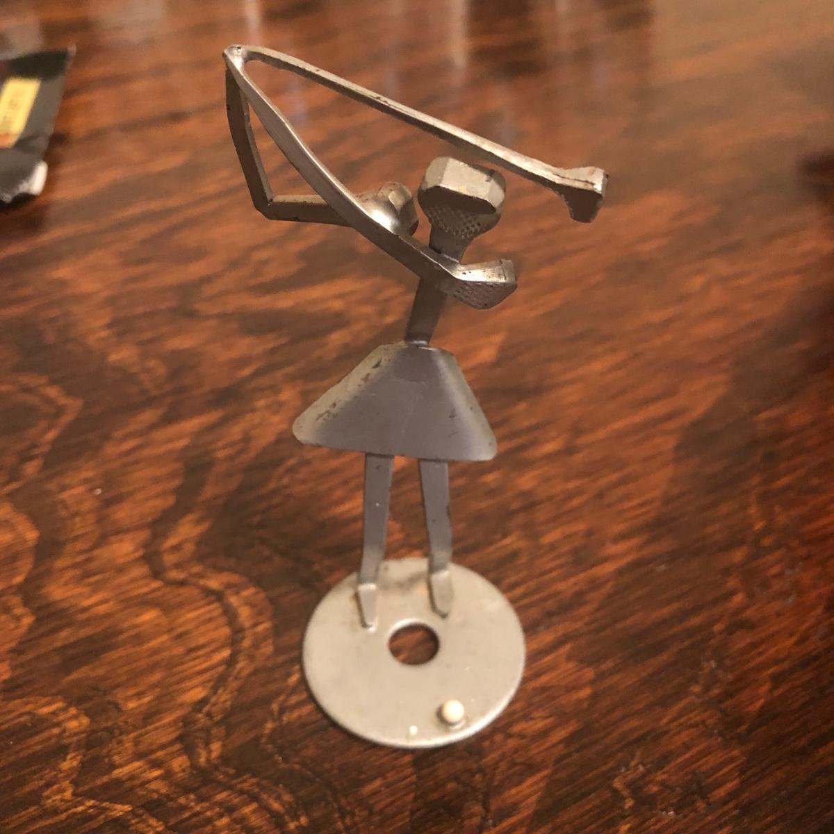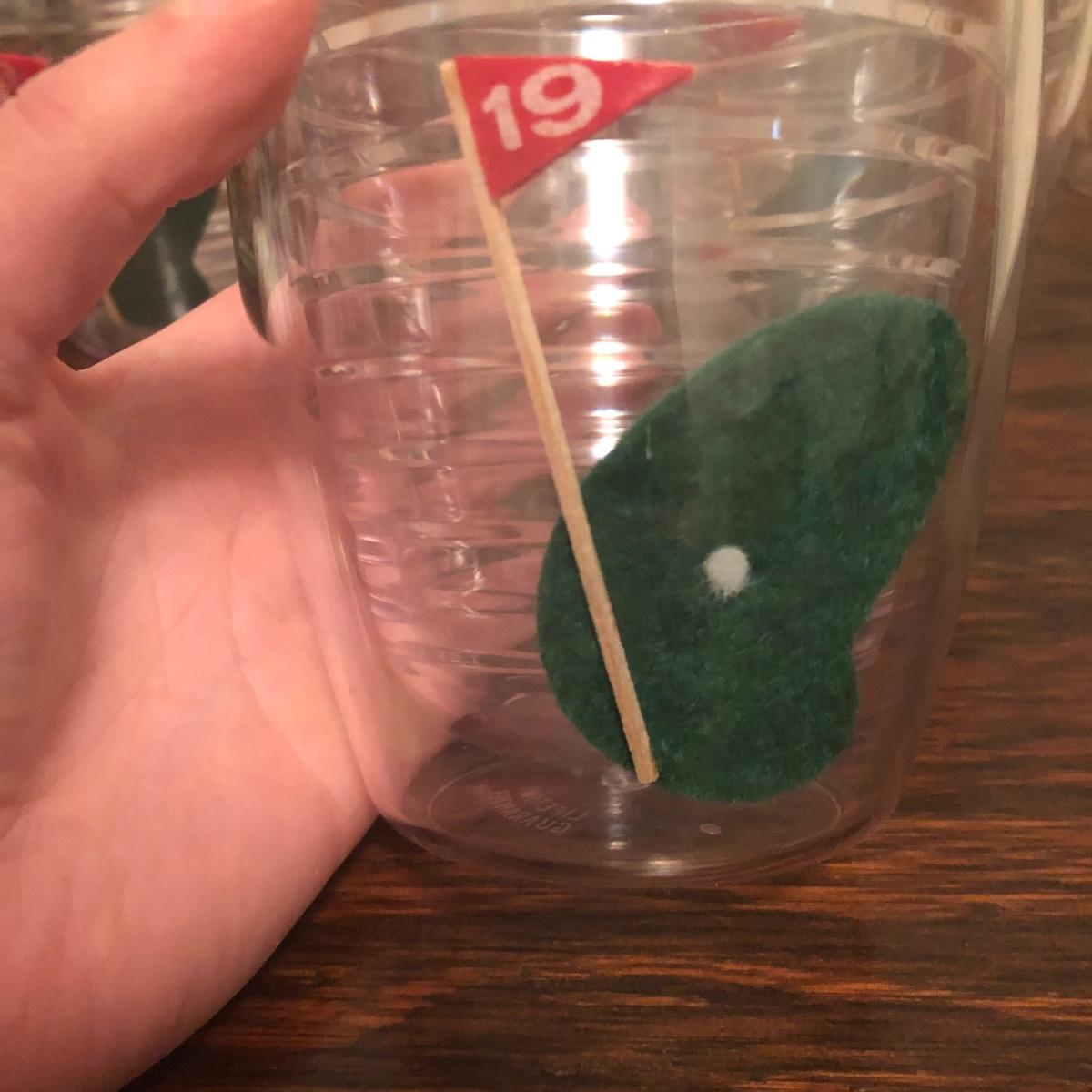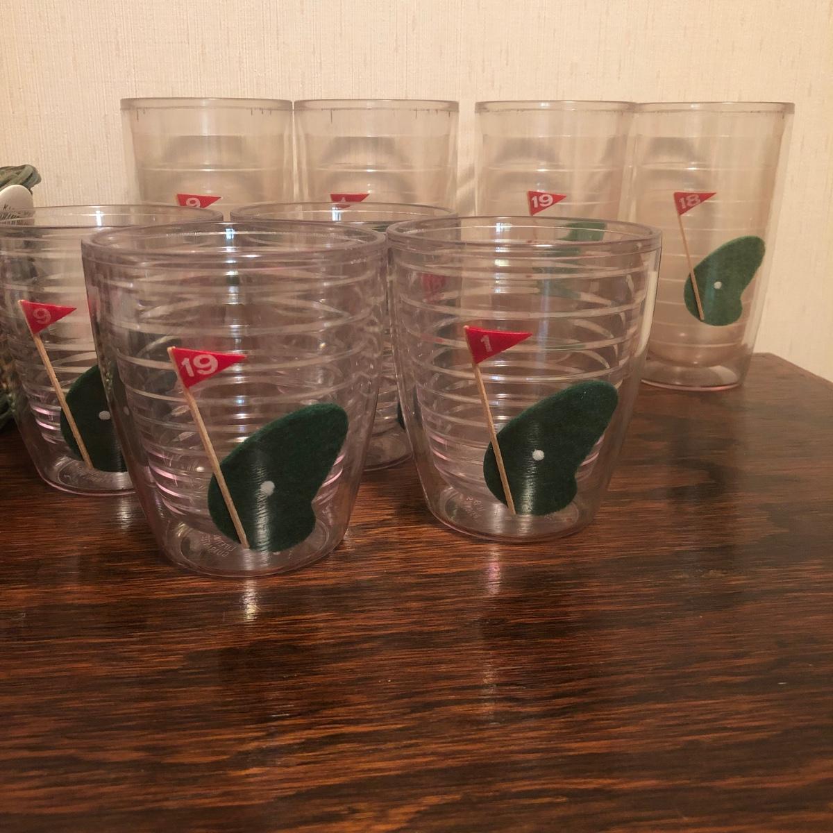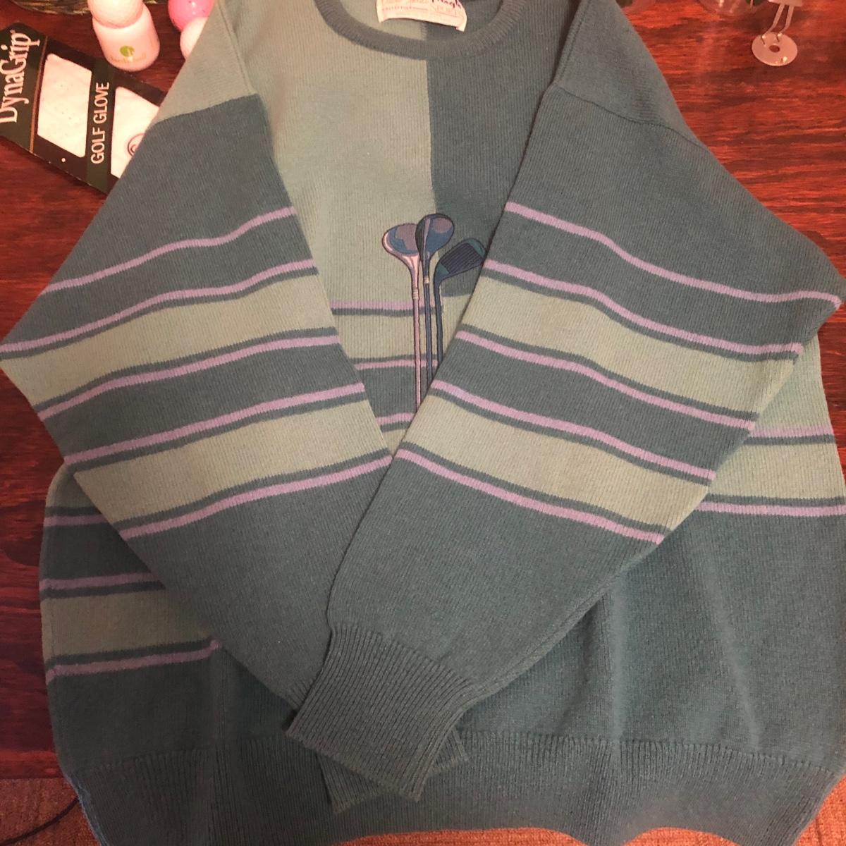 This large collection of golf themed items includes Top Flite Diva D2 golf balls with green and blue dragonflies on them, assorted Top Flite and more golf balls, A Pringle wool sweater that says Made in Scotland Vick Faldo Pringle Collection. 3 golf books, 8 golf-themed sturdy plastic cups, tees, birdieballs, a golf themed lavender scented neck and shoulder wrap, and a golf and goose basket. There is also a lady golfer sculpture made of metal nails and a DynaGrip golf glove. The large cups are 3” in diameter by 6” tall. The sweater appears to be a men’s size large. Shipping available.