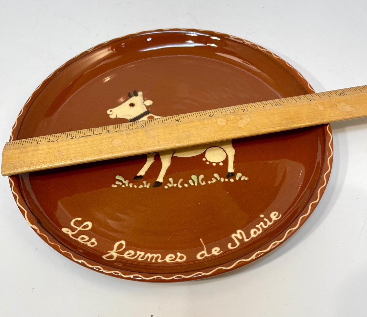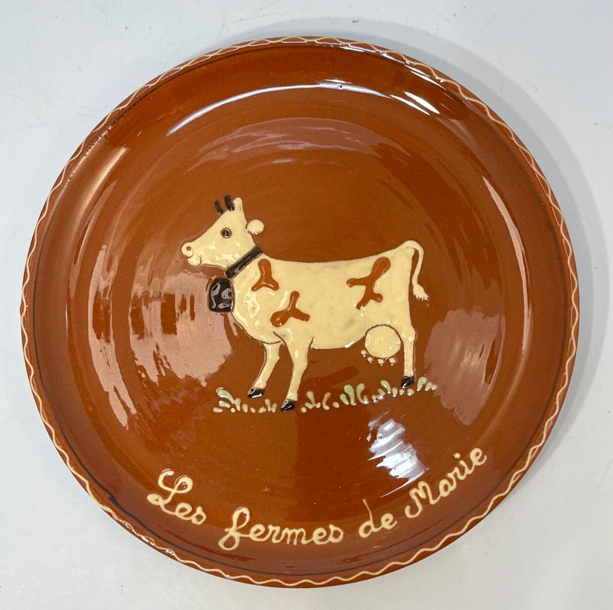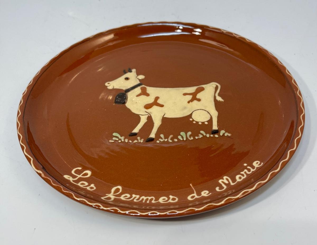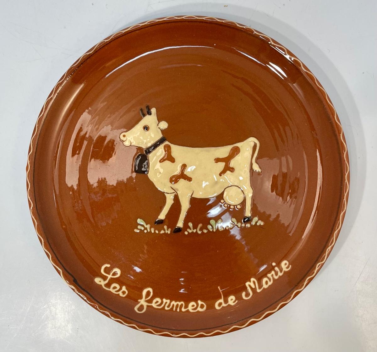 Vintage Ceramic Serving Plate Brown Spotted Cow Les Fermes de Marie Hotel Souvenir France