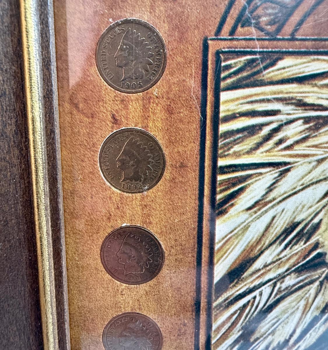 "The American Indian" Wood Framed Indian Head Pennies 10 Coins Set Wall Mount