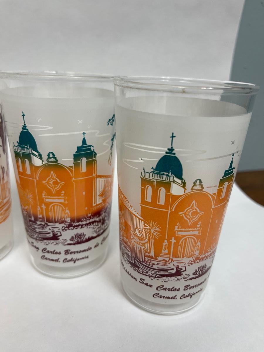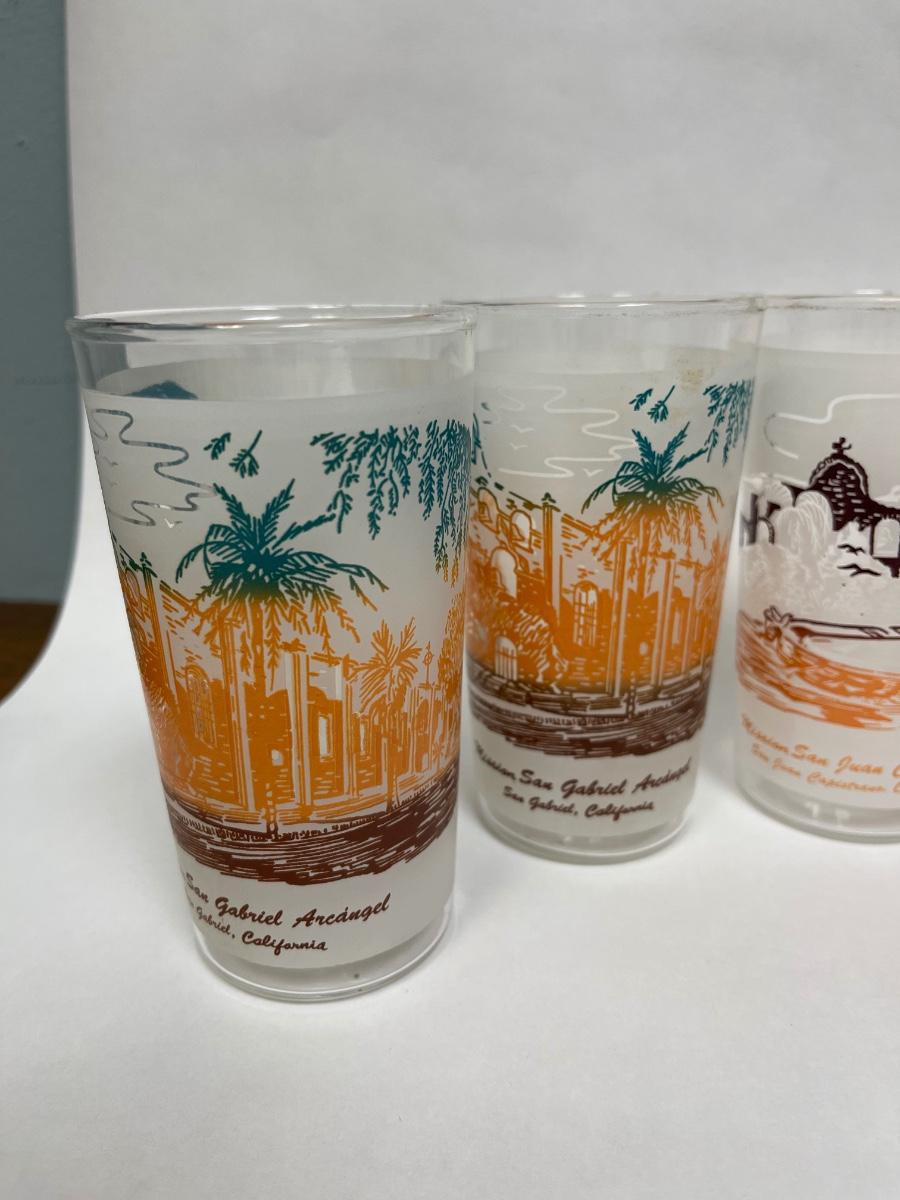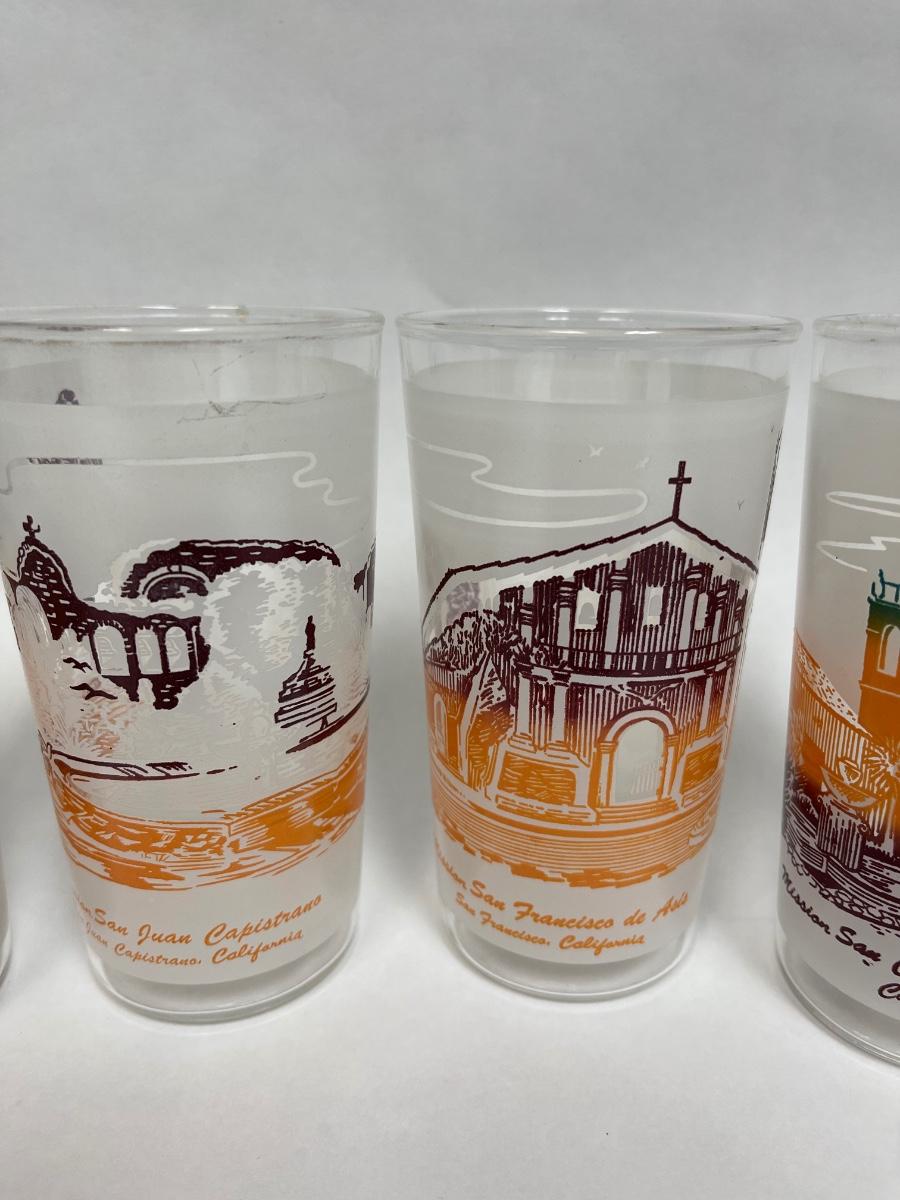 Lot of 6 MCM Vintage Libbey Beverage Glasses  - Souvenir California Missions - Mid-Century Modern