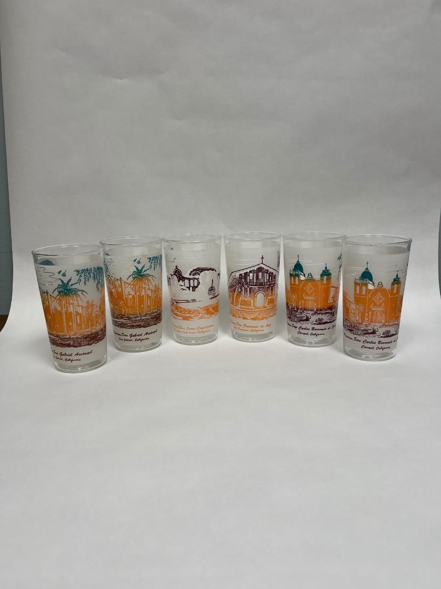 Lot of 6 MCM Vintage Libbey Beverage Glasses - Souvenir California Missions - Mid-Century Modern