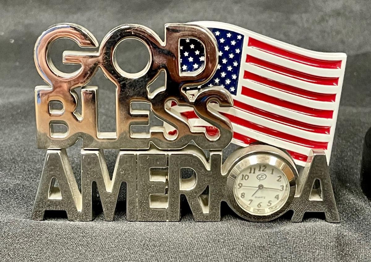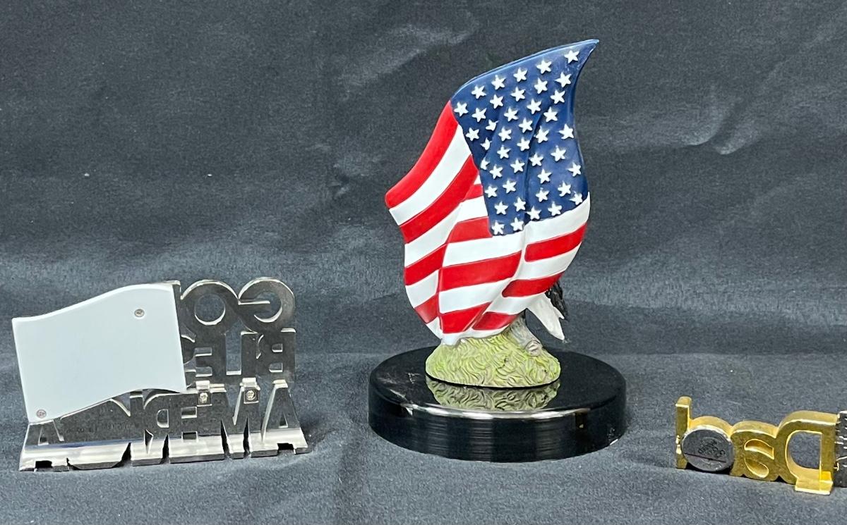Best Dad Clock and Patriotic Collectibles God Bless America Bald Eagle Statuette. In good previously displayed condition. May be dusty from previous display.
