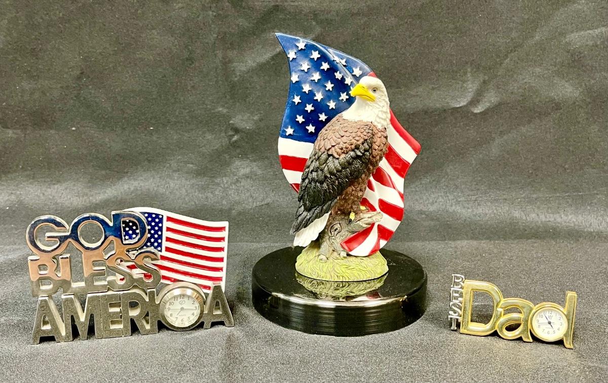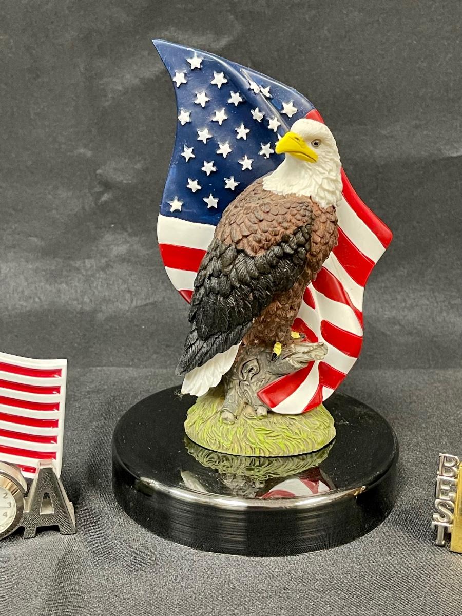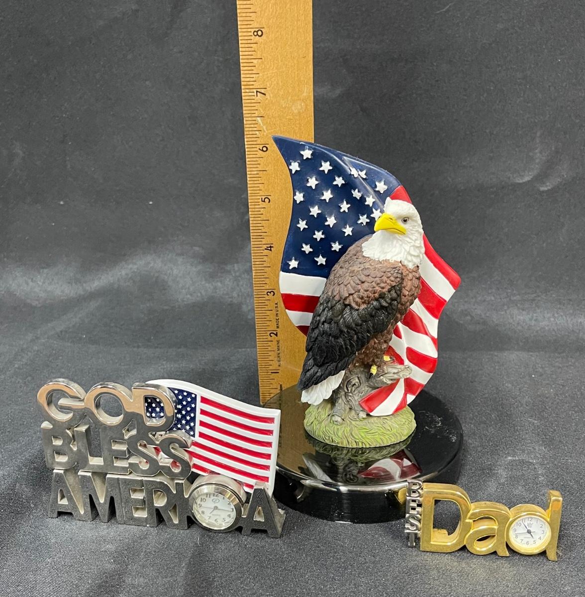 Best Dad Clock and Patriotic Collectibles God Bless America Bald Eagle Statuette