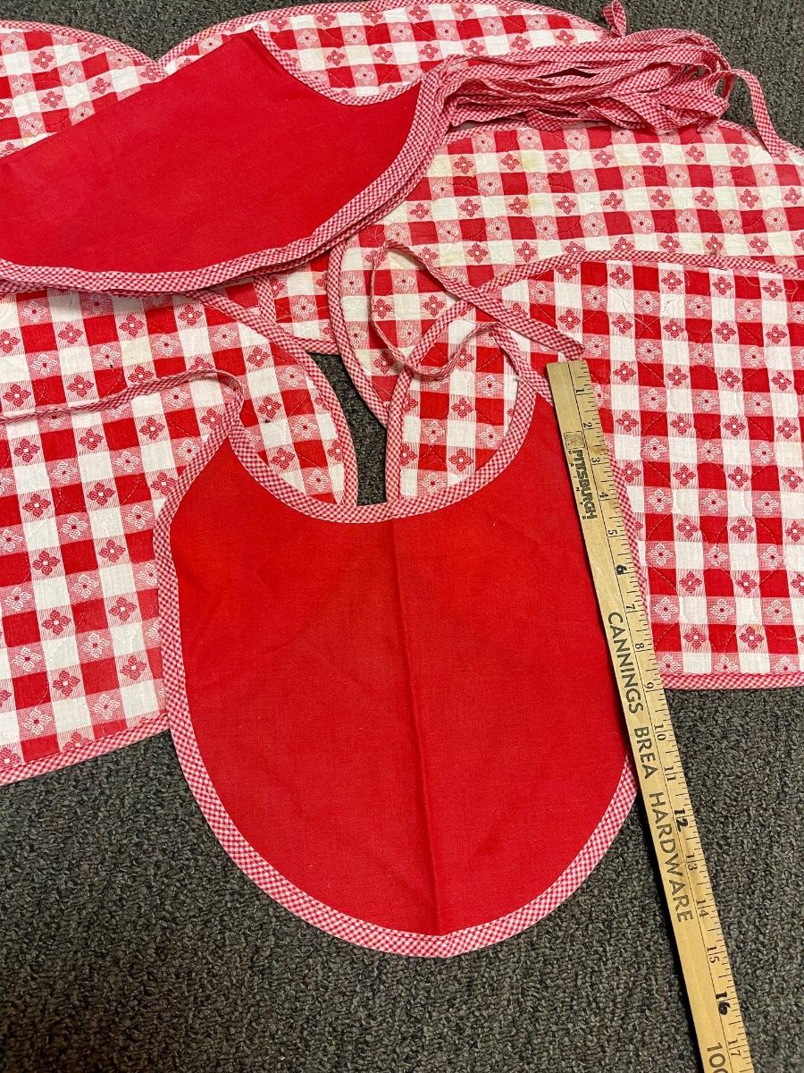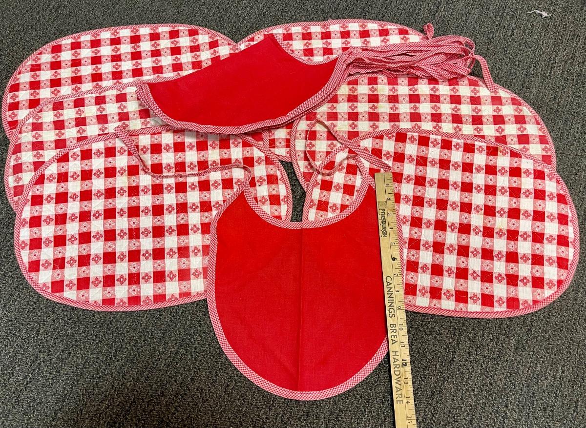Red and White Checker Gingham Placemats and Bibs. In vintage condition. May have light spots.